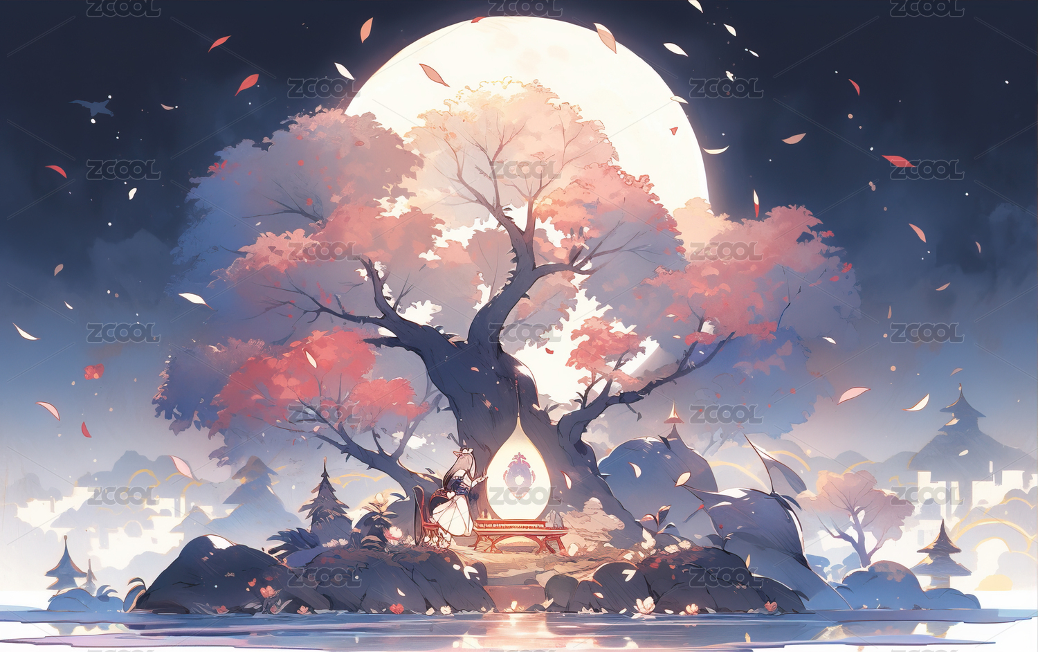 手绘唯美的抽象艺术感夜晚天空风景插画