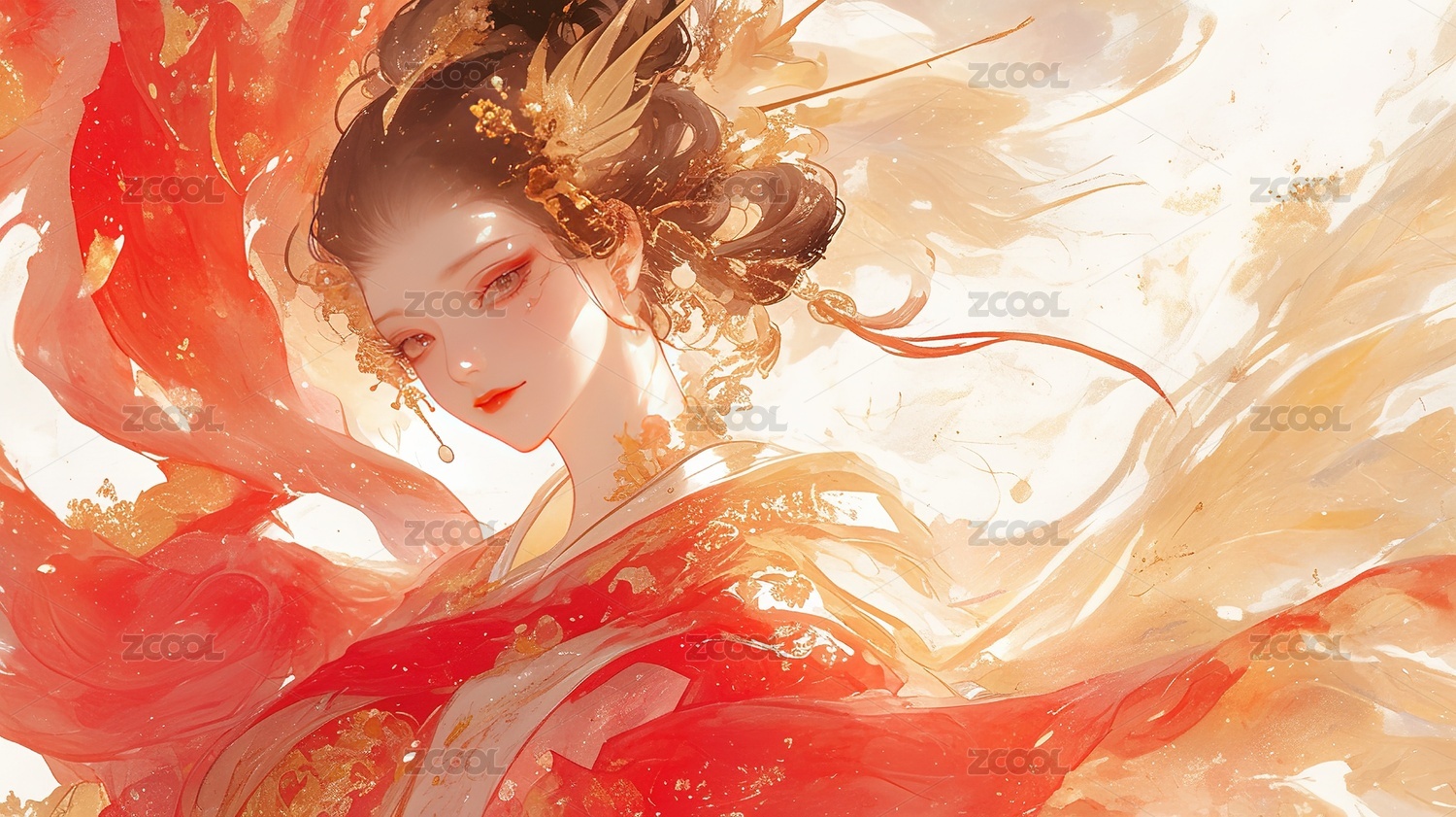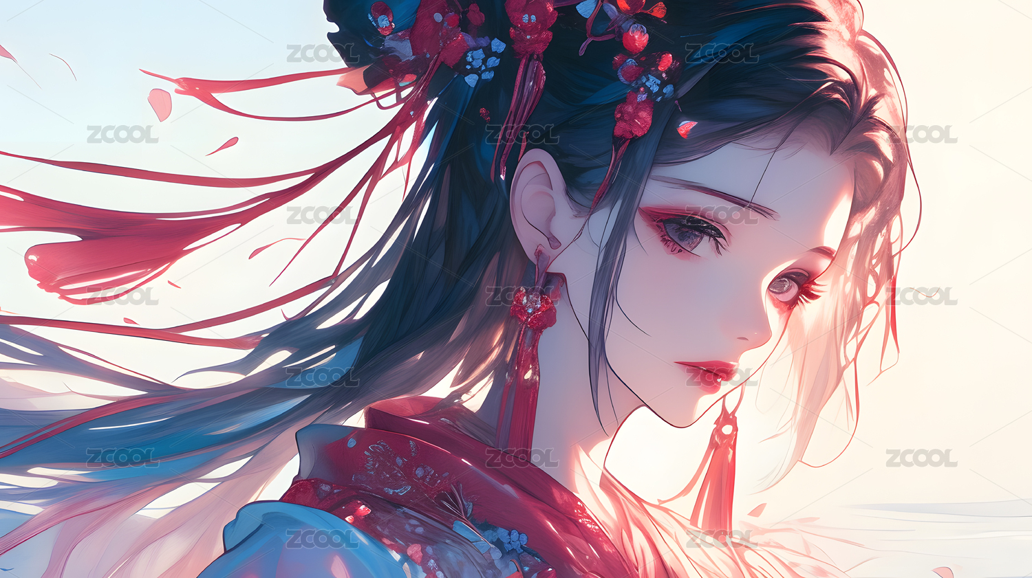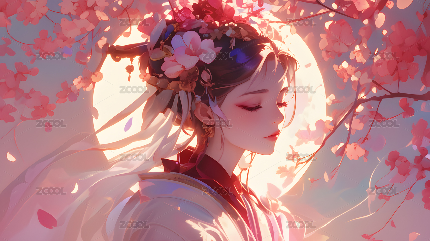 手绘卡通动漫唯美可爱的中国古风古装女孩插