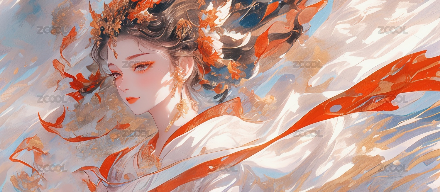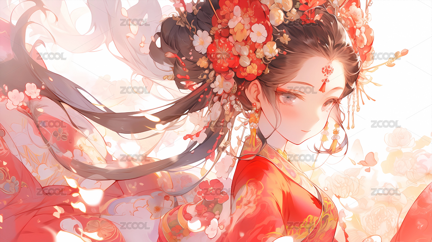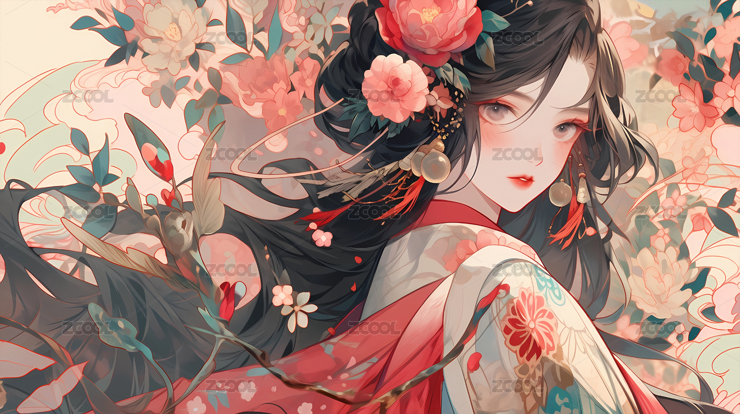 手绘卡通动漫唯美可爱的中国古风古装女孩插