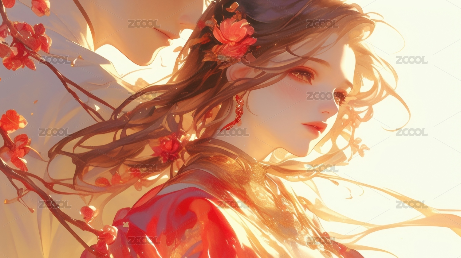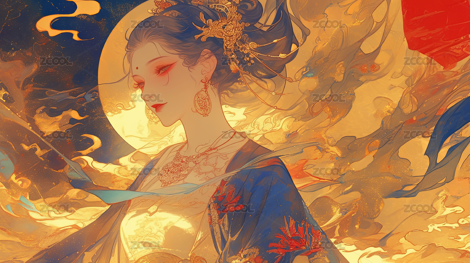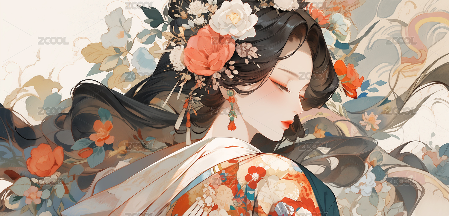 国潮风,中国风,美女,少女,卡通,插画,人,女孩