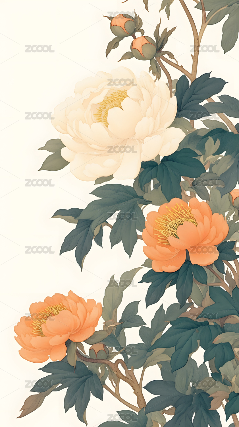 AIGCFG01,插画,浮世绘,鲜花,花朵,花,植物,芍药,牡丹