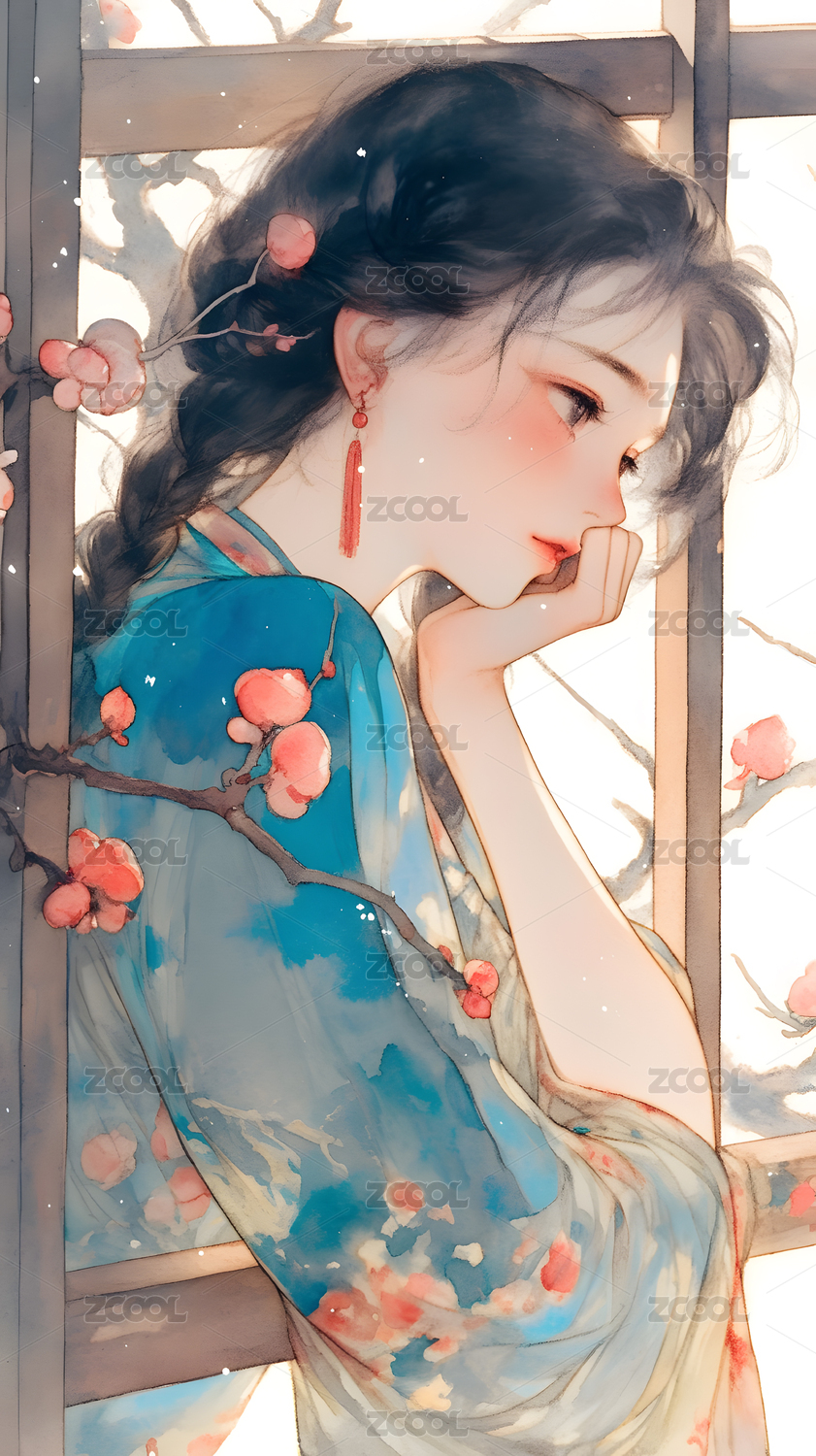 人,人物,卡通,插画,古风,中国风,美女,女孩,少女,汉服