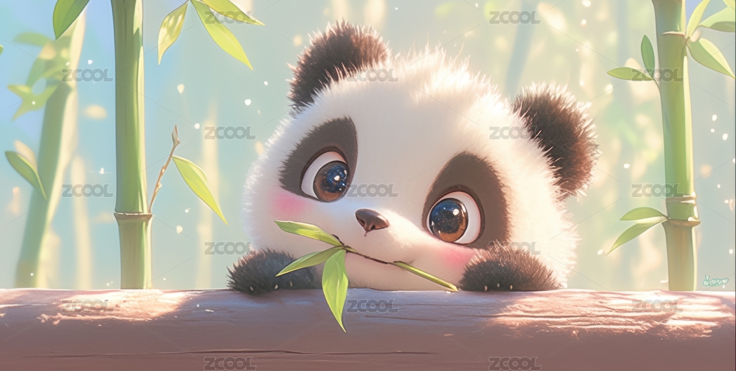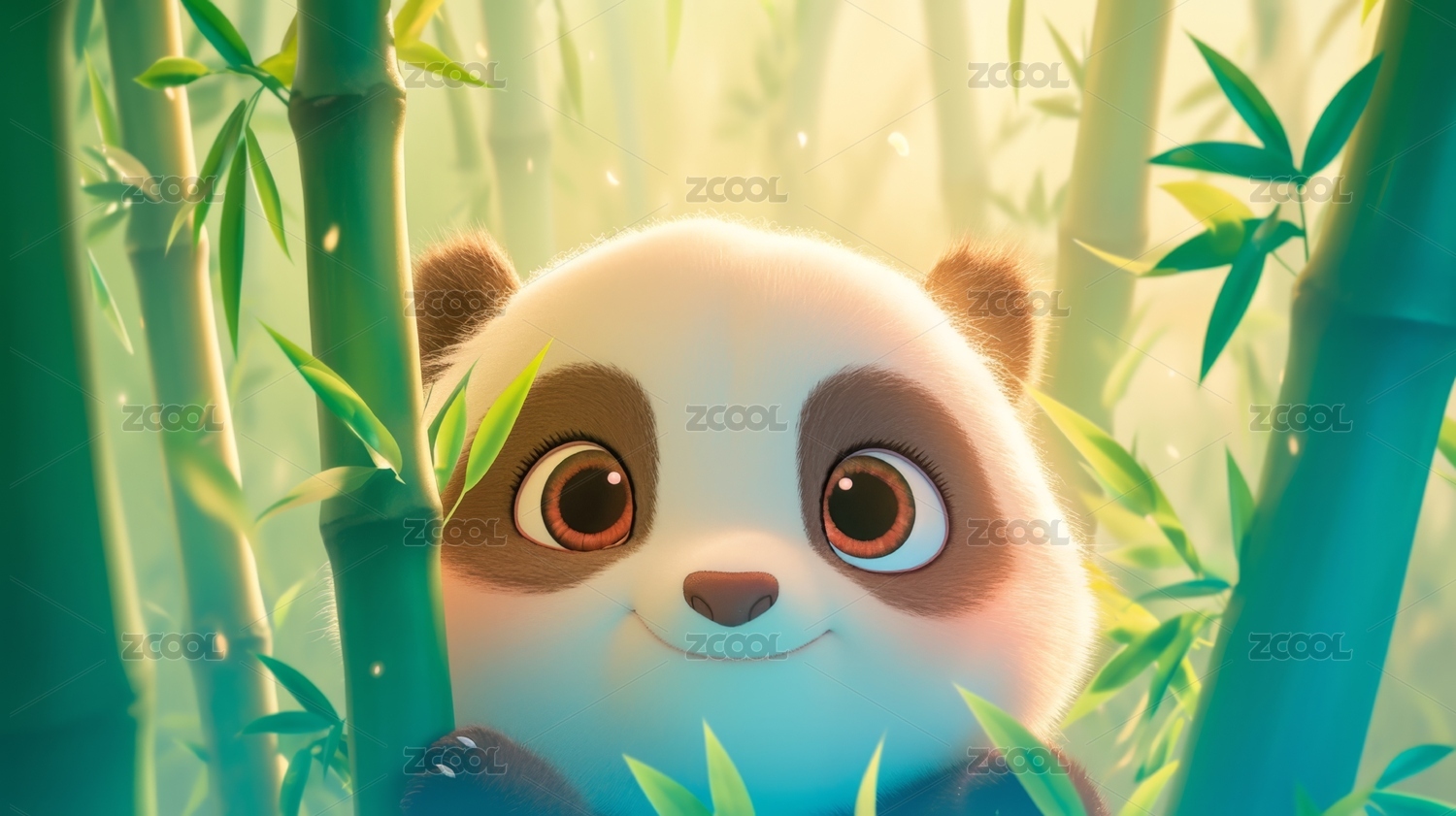 竹林里的可爱大熊猫3D卡通元素壁纸插画