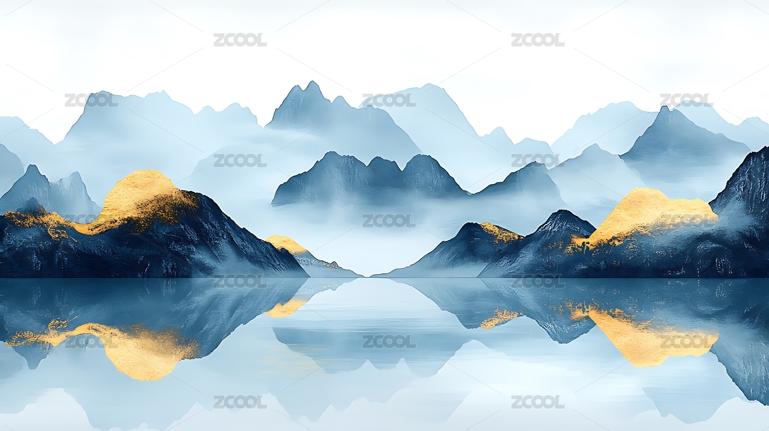 抽象蓝色意境山水装饰画中国风写意山水背景
