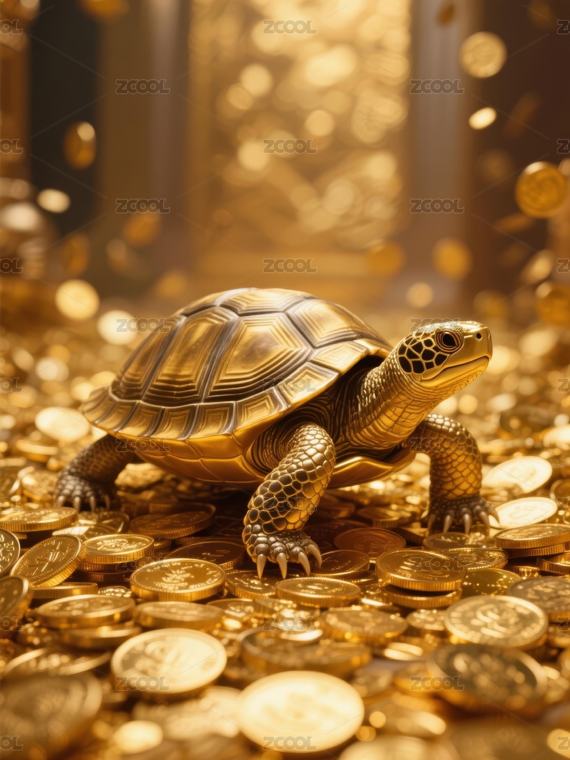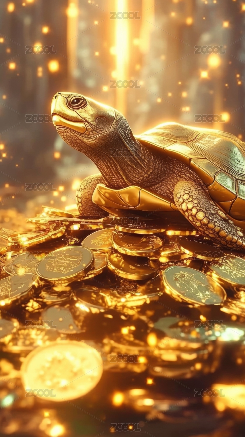 金色乌龟站在金币上