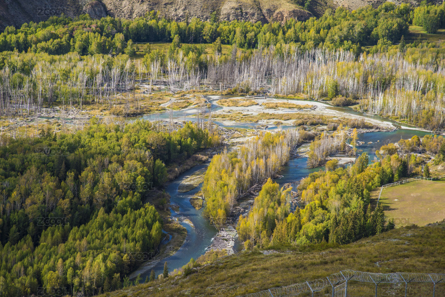 中国新疆阿勒泰布尔津喀纳斯禾木村秋天风光