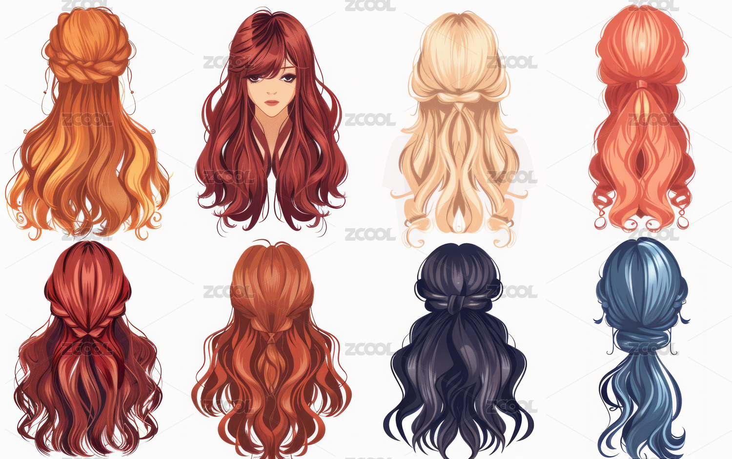 头发,发型,参考图,假发,插画,发色,示意图,柔顺,丝滑,洗发水