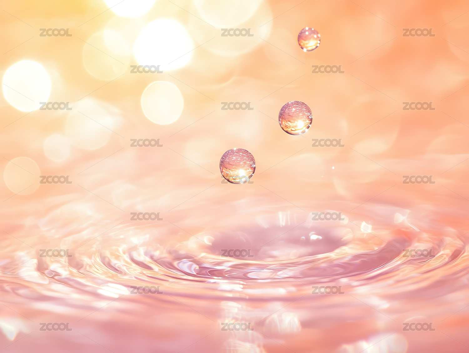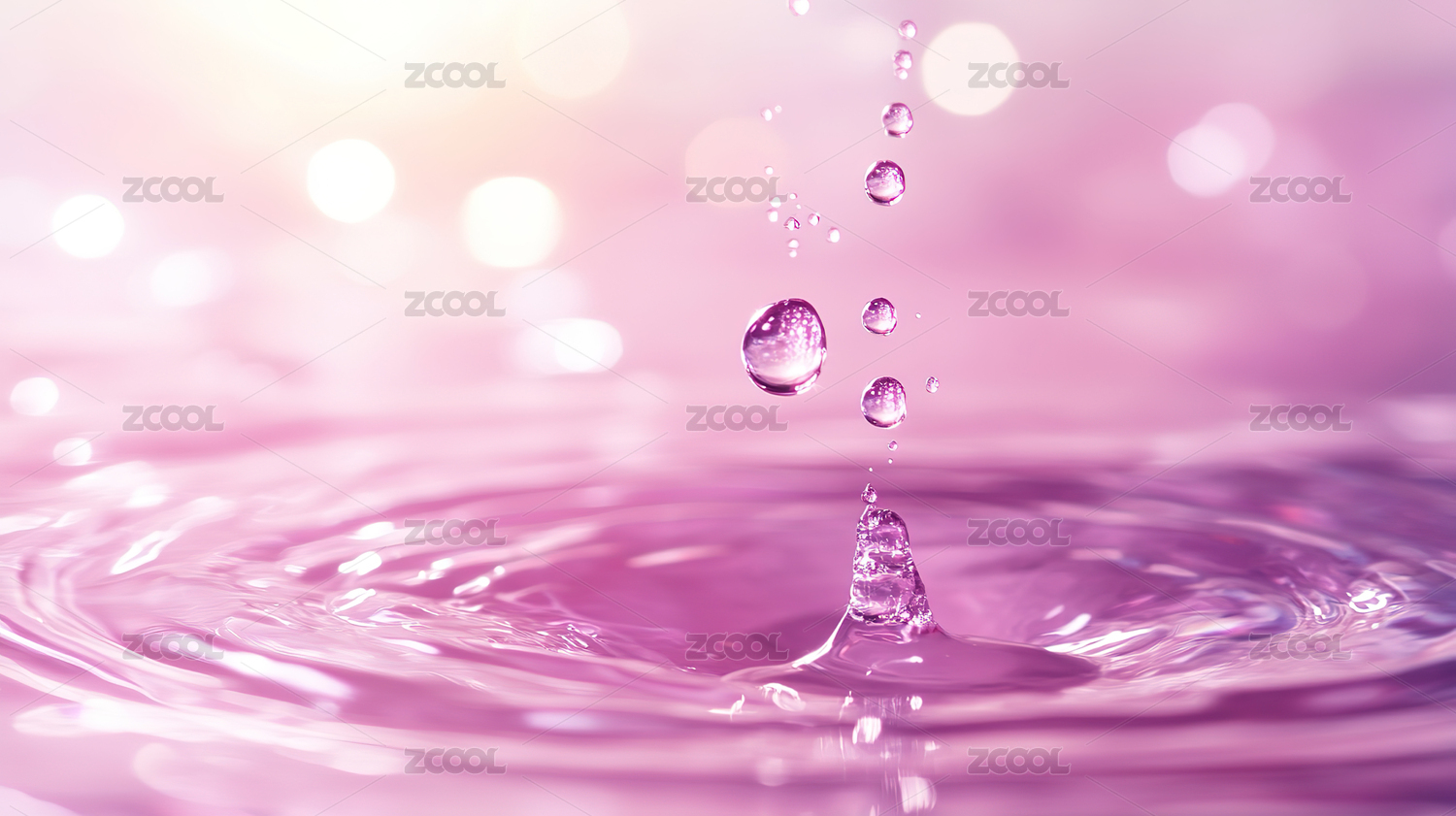 水珠涟漪映衬粉紫渐变背景