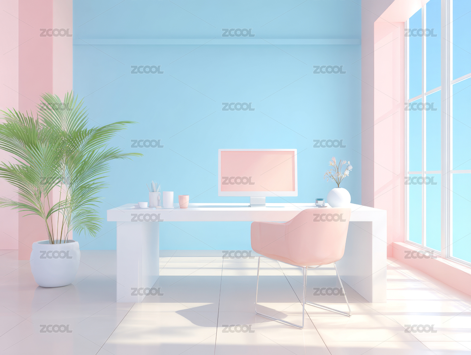 3D室内多巴胺色系极简背景墙