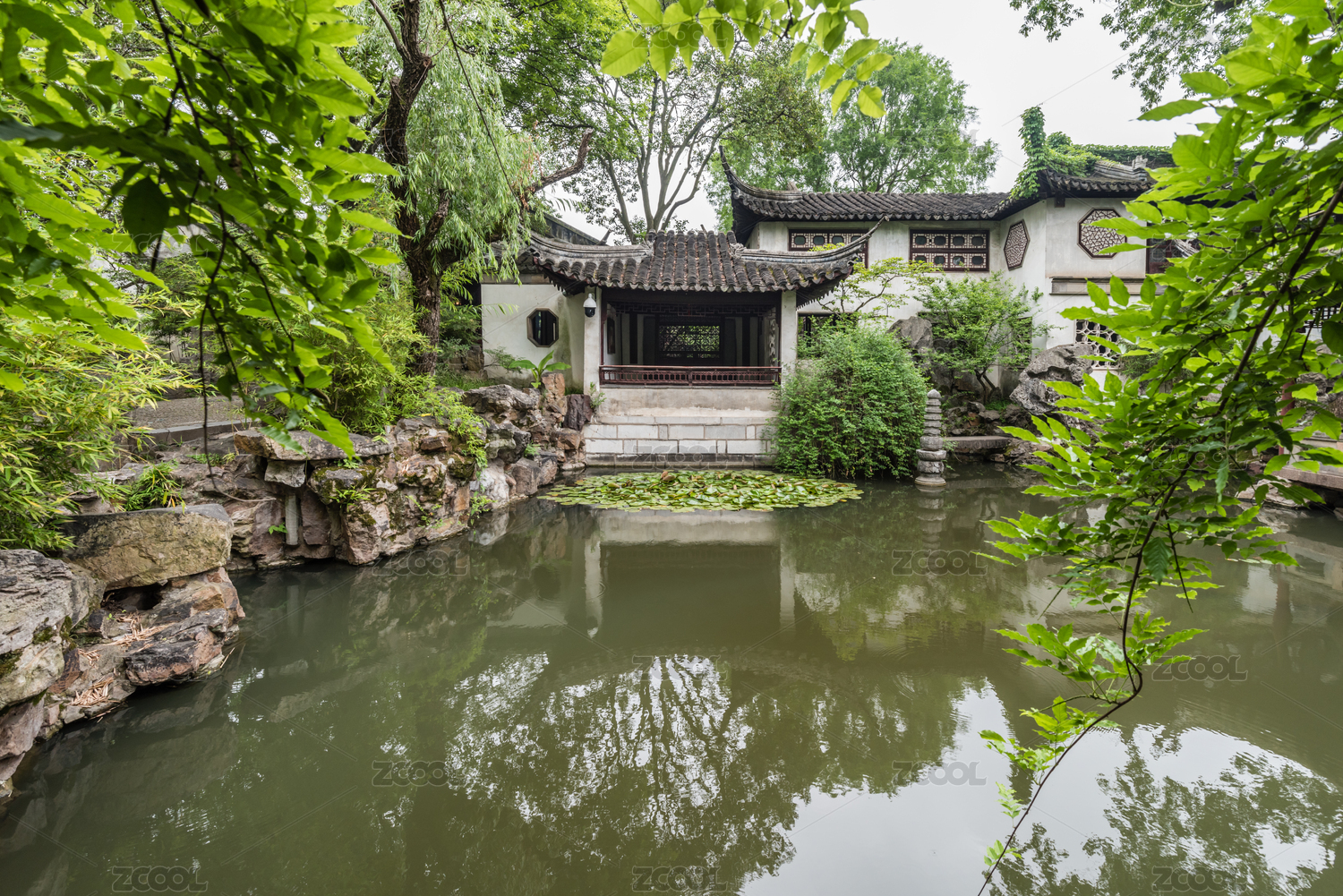 江苏同里古镇耕乐堂池塘假山古建筑景观