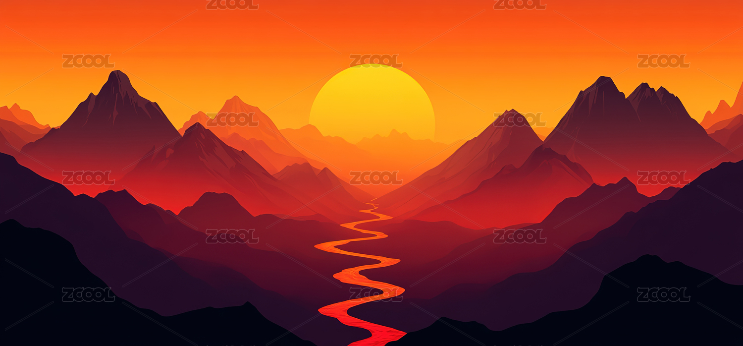 群山日落风景插画