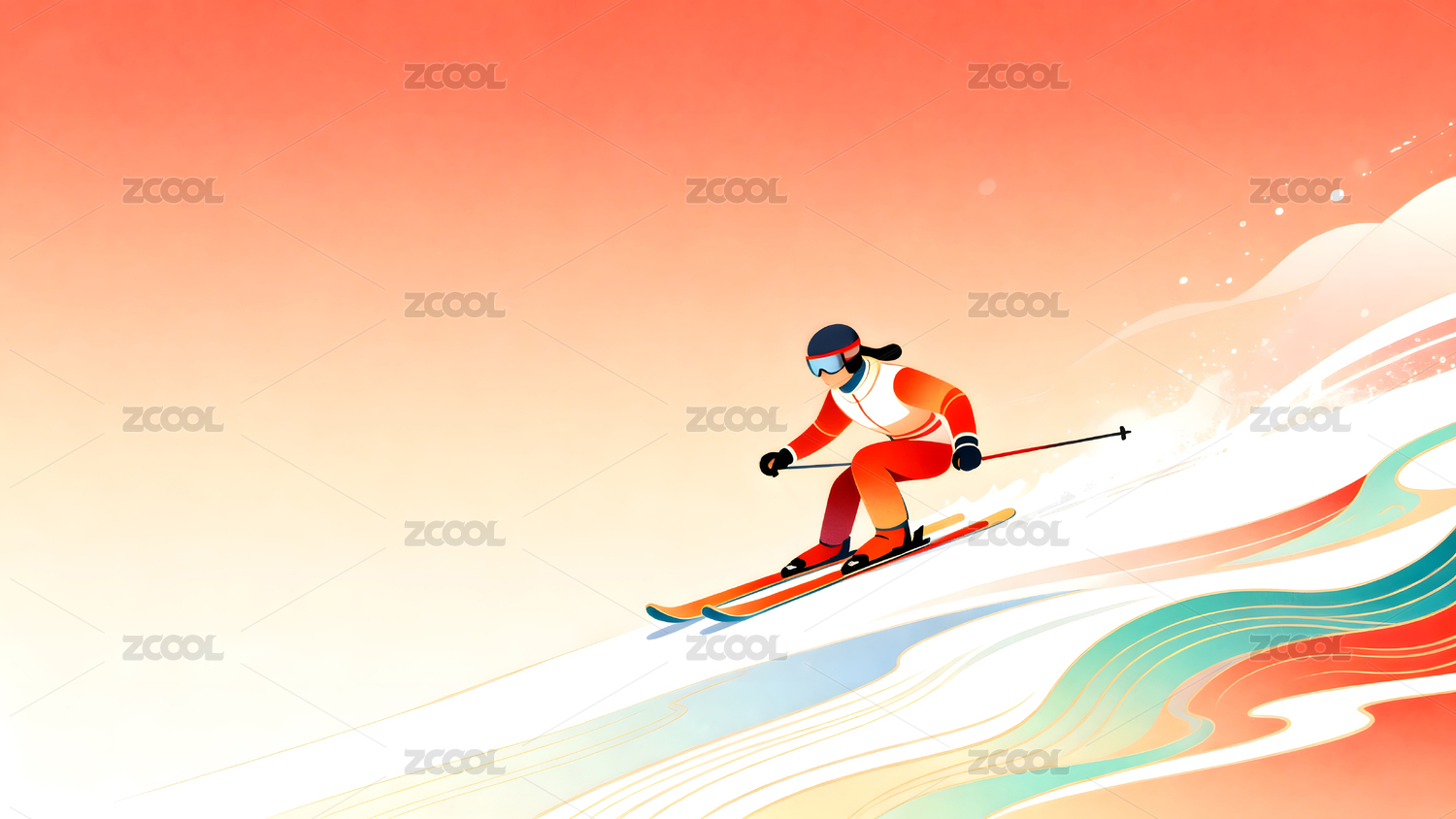 运动员冬季户外滑雪训练比赛竞技运动会插画