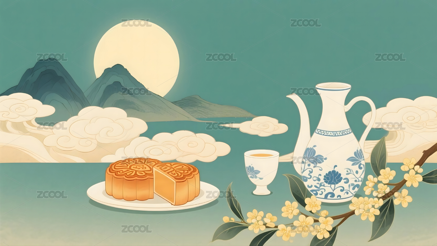 八月十五中秋节传统吃月饼节日美食国潮插画