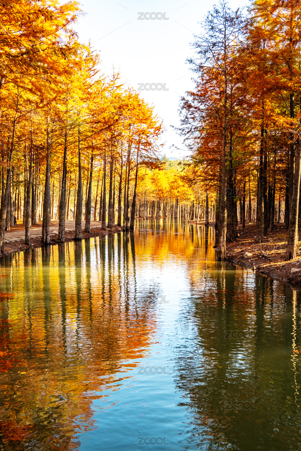 风光,风景,秋天,水杉,自然,红杉,秋色,水,绚烂,树林