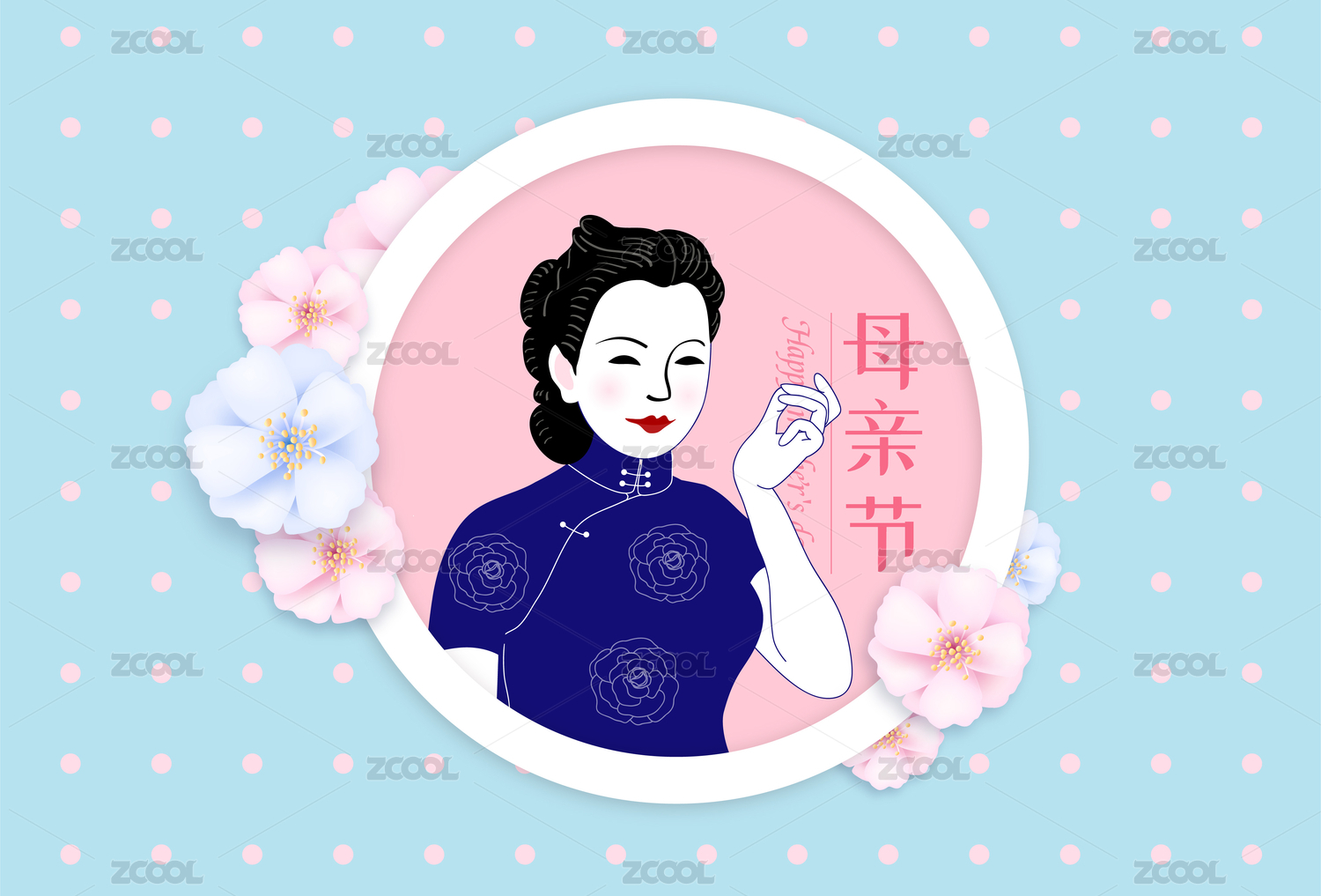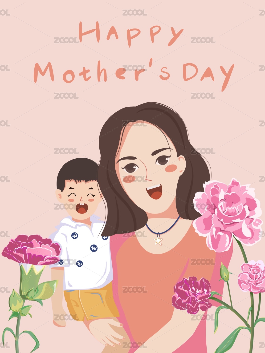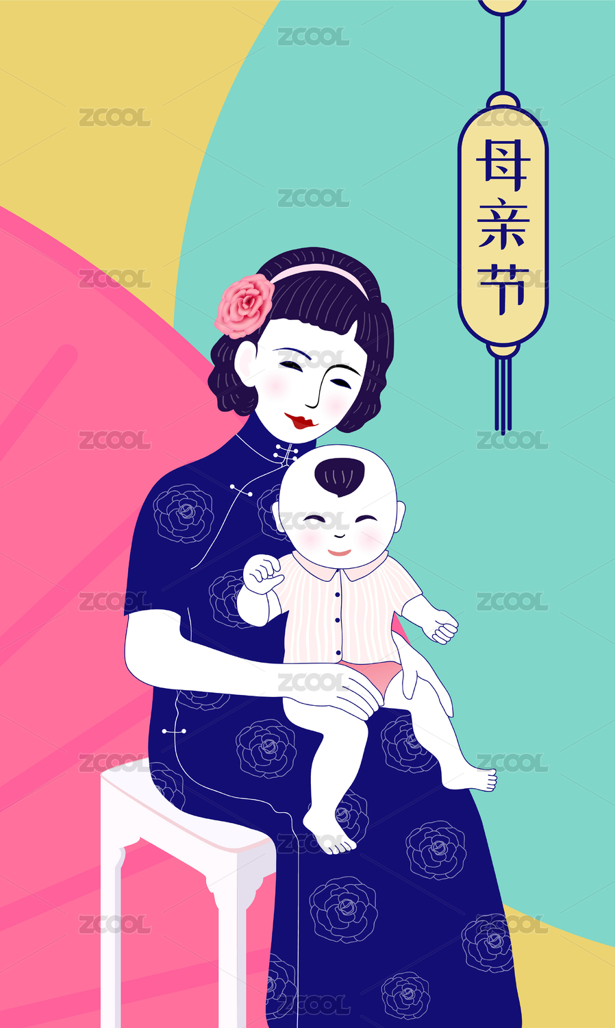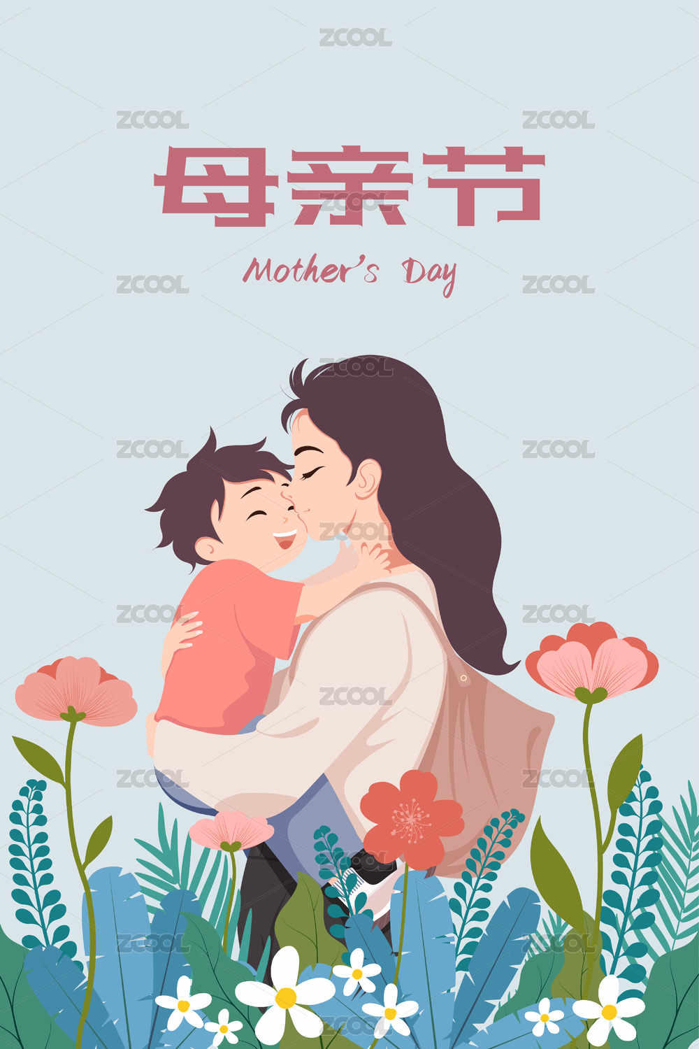 妈妈抱着小孩眼里充满爱母亲节矢量插画海报
