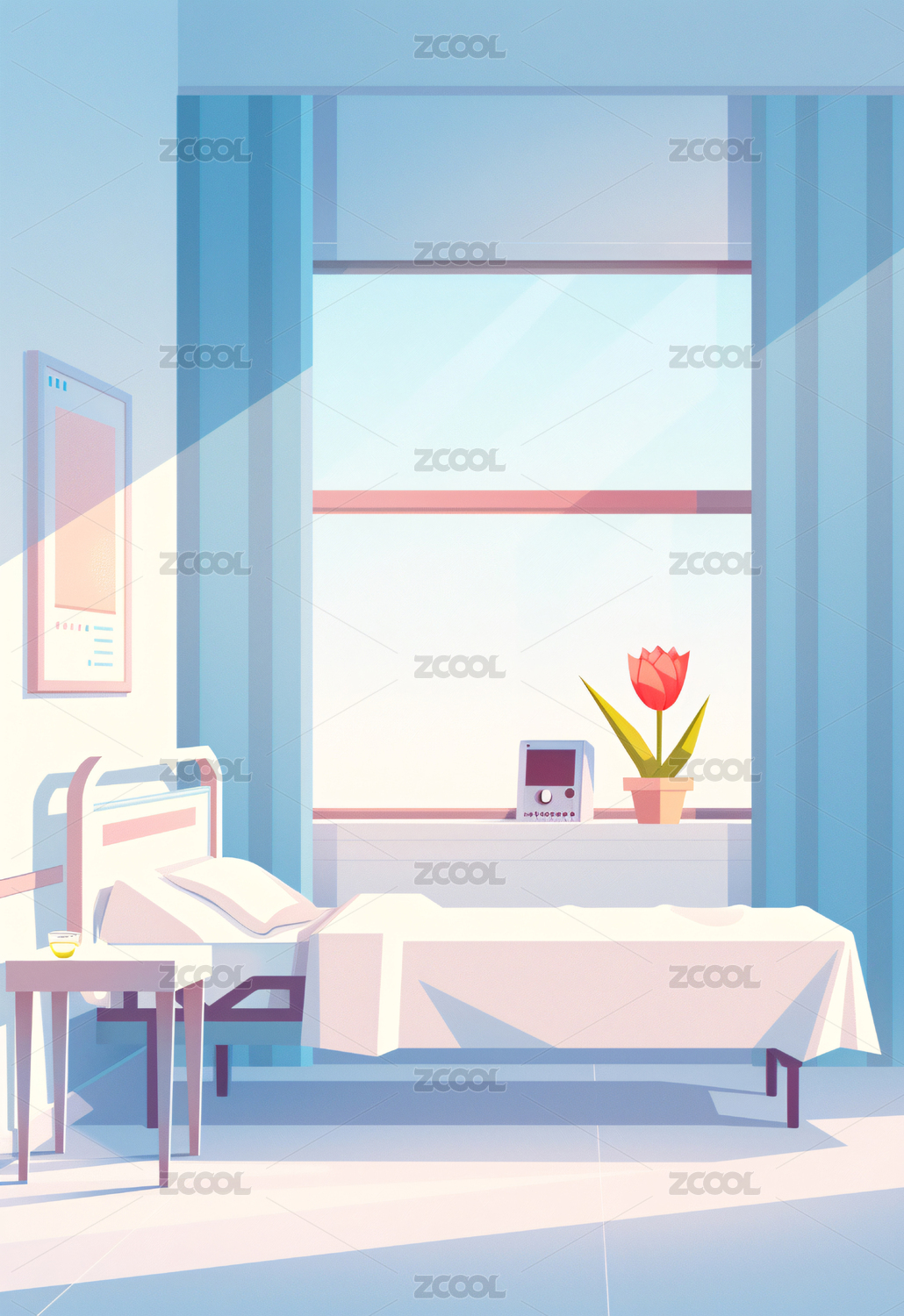医院病房诊所治疗医疗保健室内病床医疗插画