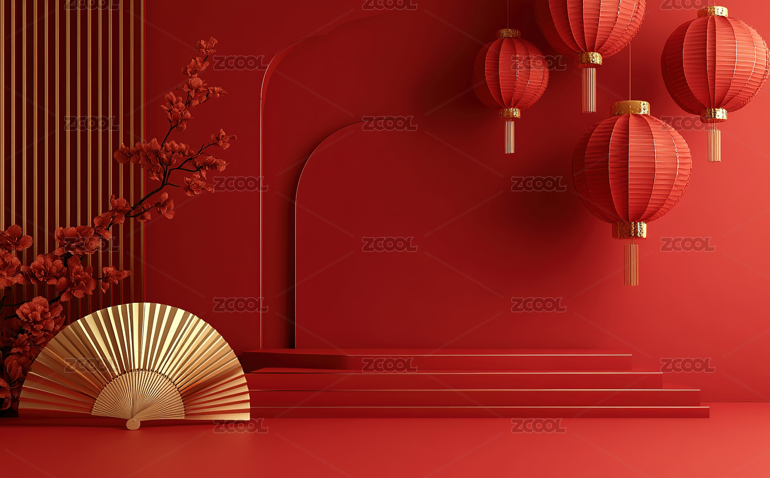 红色背景下的中式灯笼