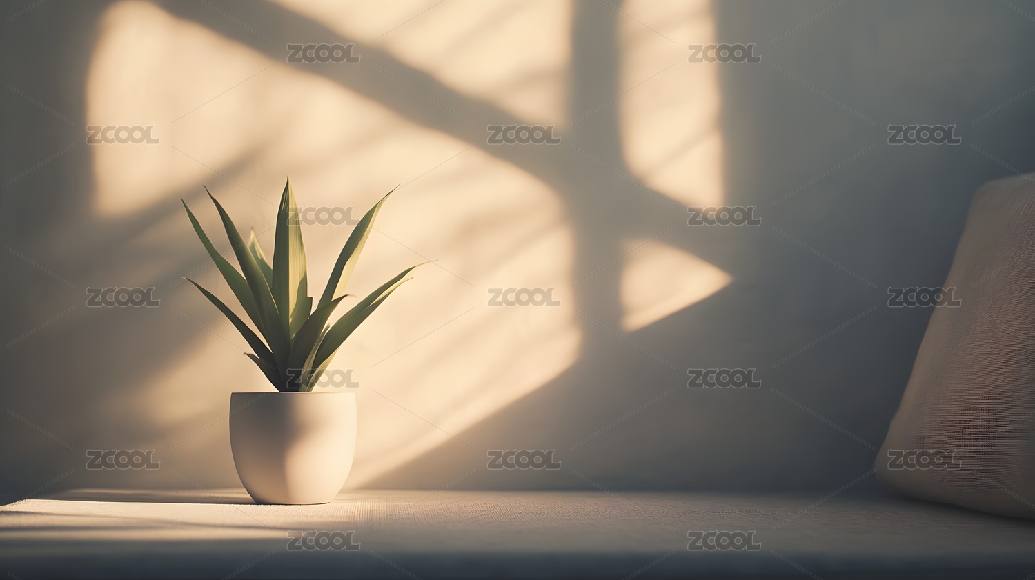 窗边桌上绿植盆栽的清新治愈摄影素材