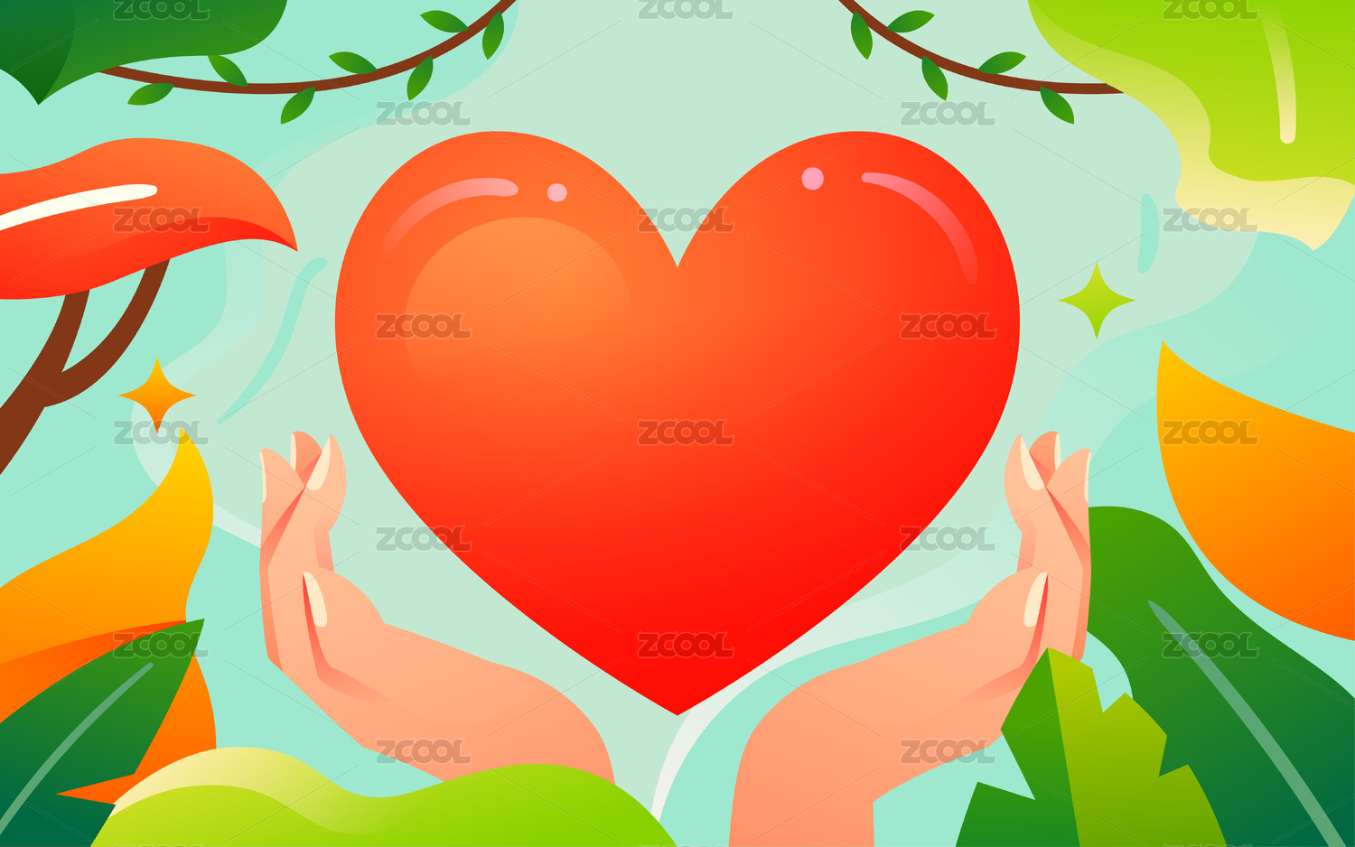 双手捧着爱心插画