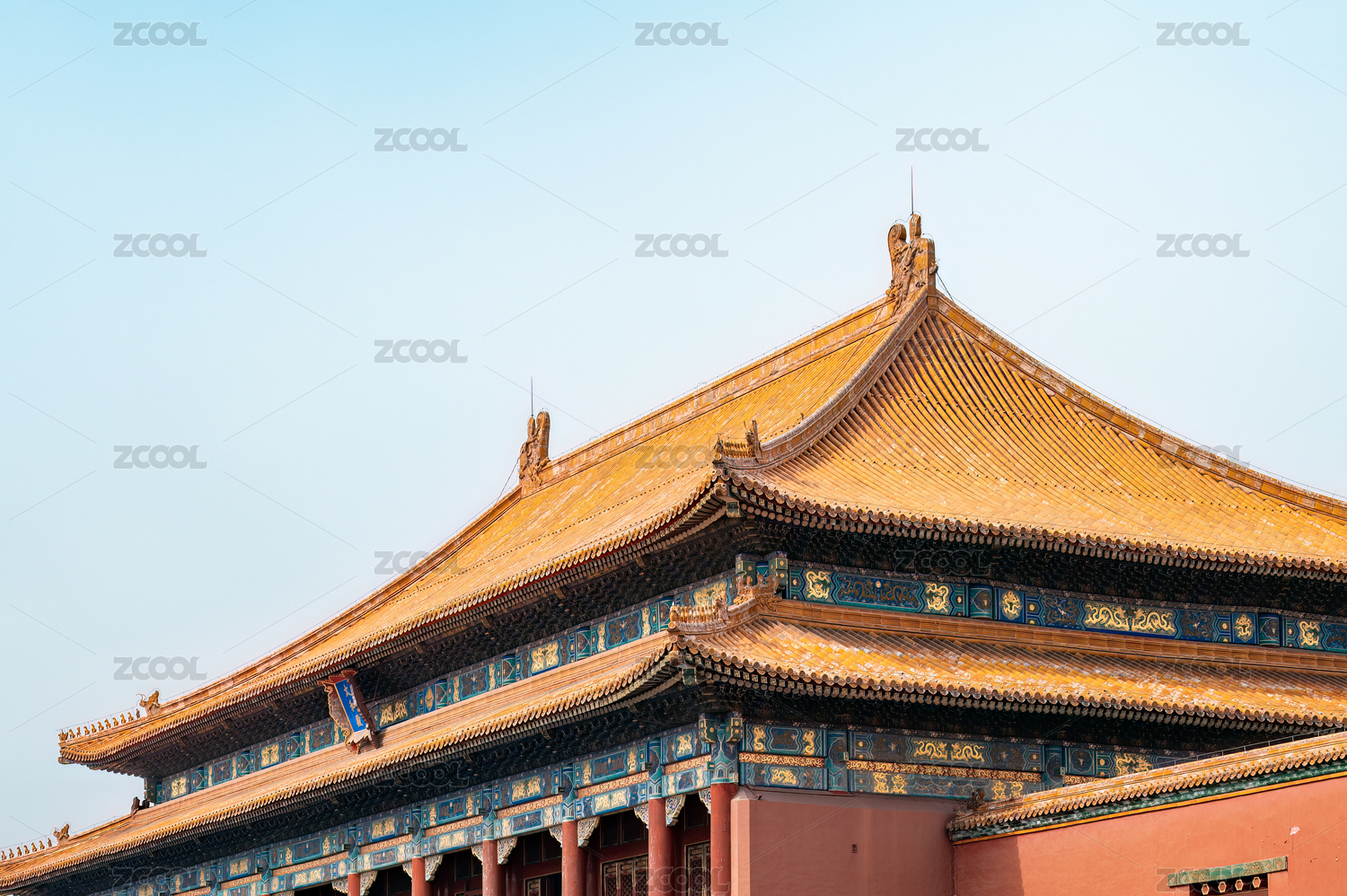 北京故宫太和殿金碧辉煌的屋檐