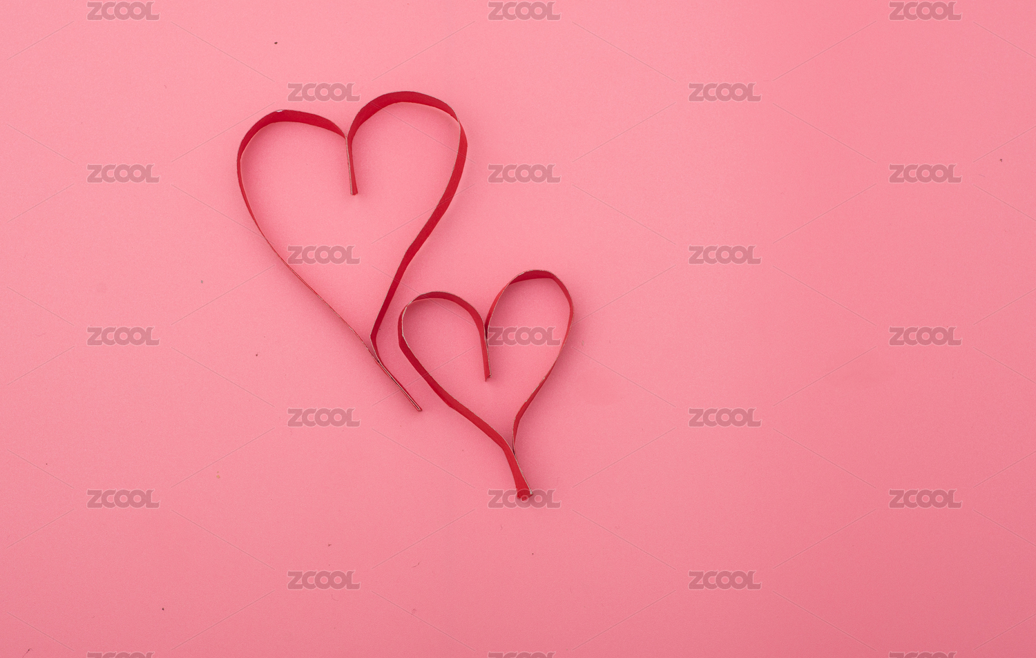 红色的爱心放在粉色的背景纸上。