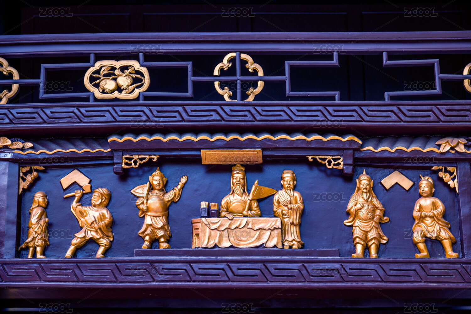 成都洛带古镇禹王宫戏楼裙边木雕艺术