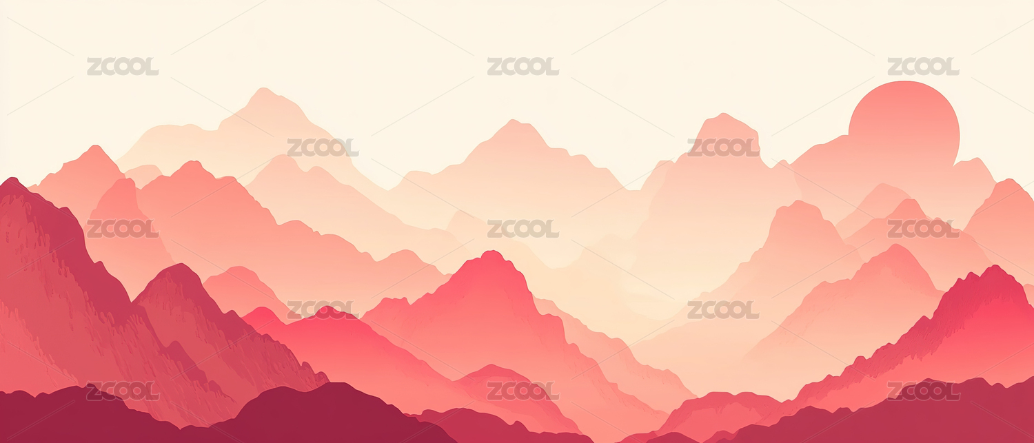 群山,粉色,山脉,山,手绘,插画,背景,高山,风景,淡雅
