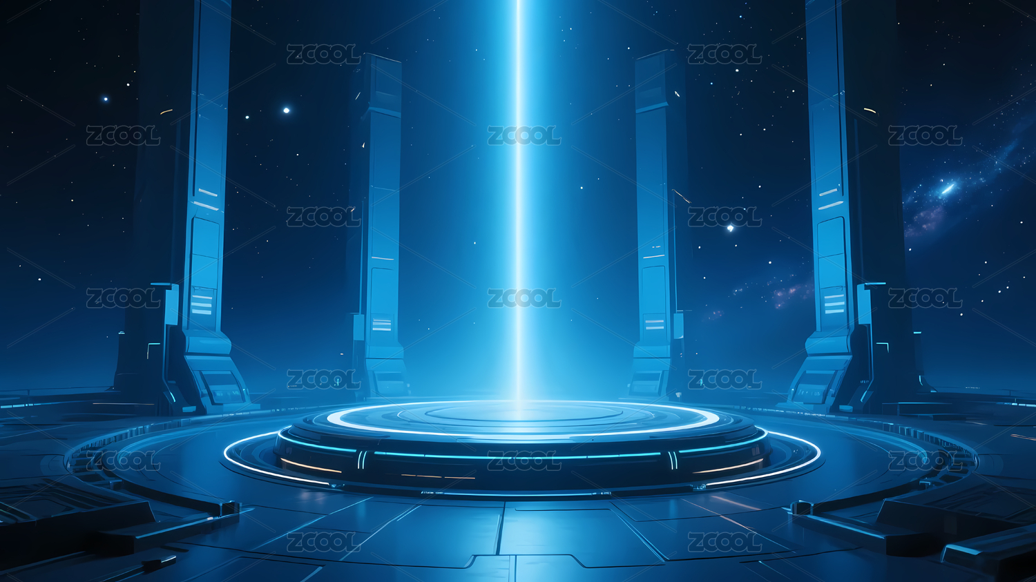 神秘蓝色光柱与星空背景