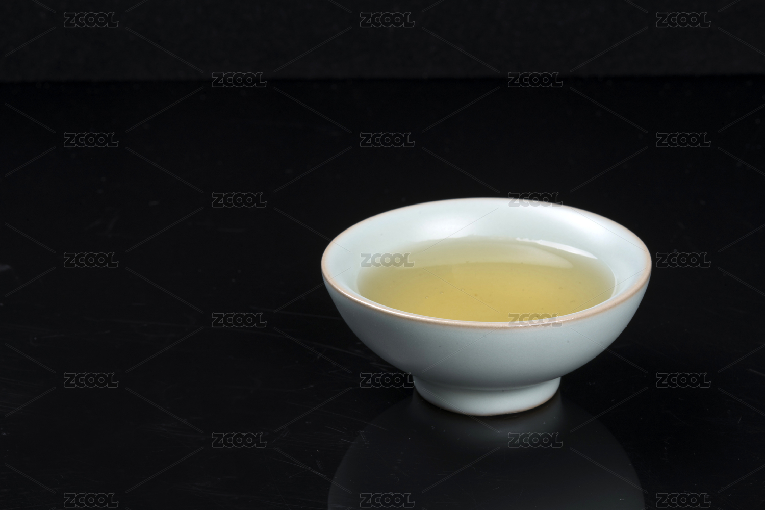 淡黄色陶杯装入特级信阳毛尖甘甜的茶汤