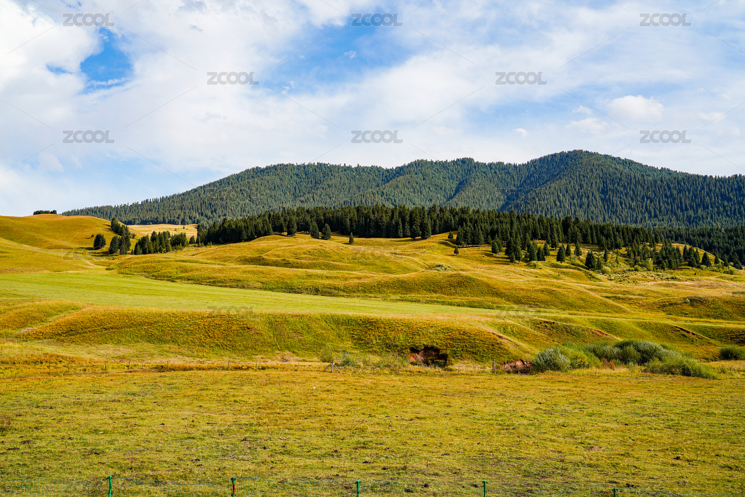 中国新疆伊犁那拉提草原的森林草原和牧场