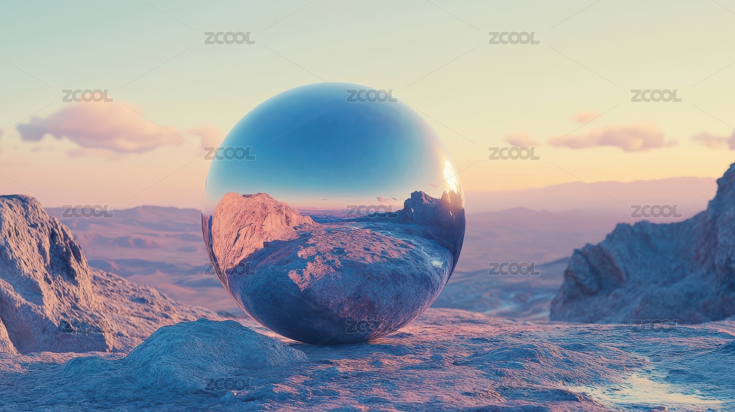 镜面球体反射荒漠景观