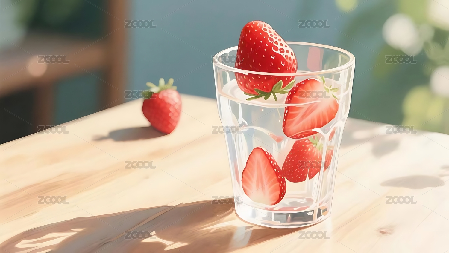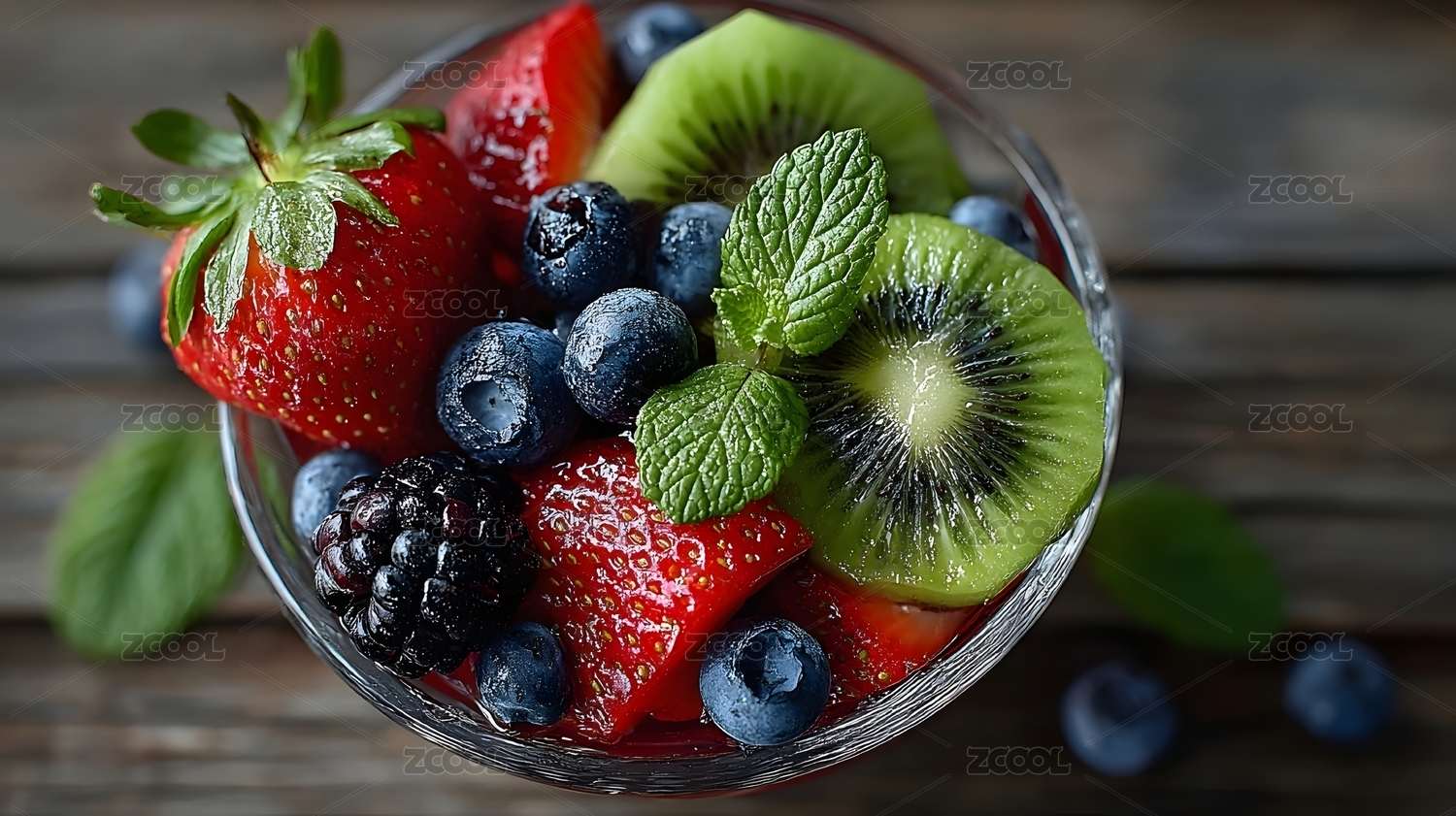 水果,沙拉,玻璃杯,草莓,蓝莓,橙子,西瓜,颜色,鲜艳,清新