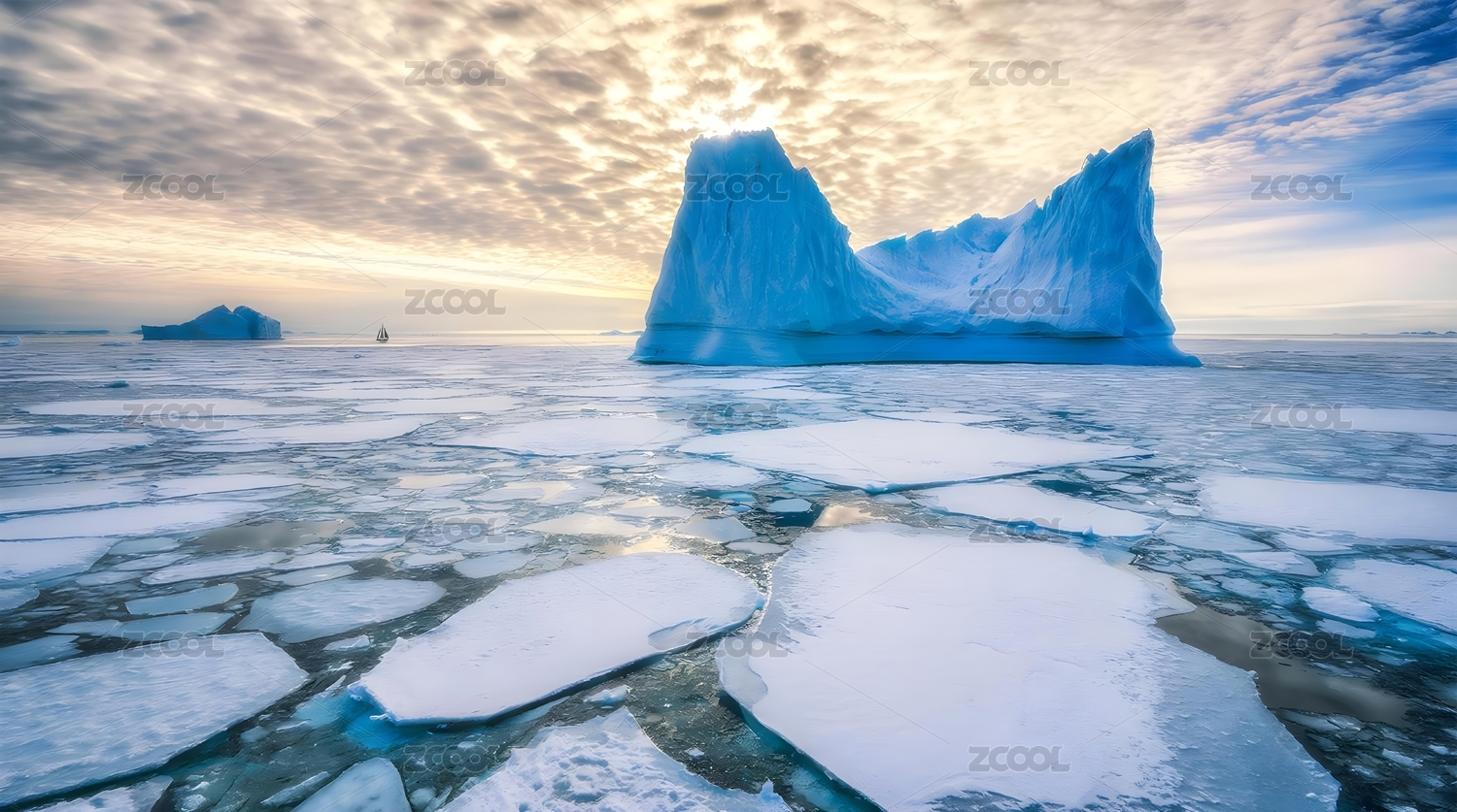冰川世界漂浮冰块冷色调