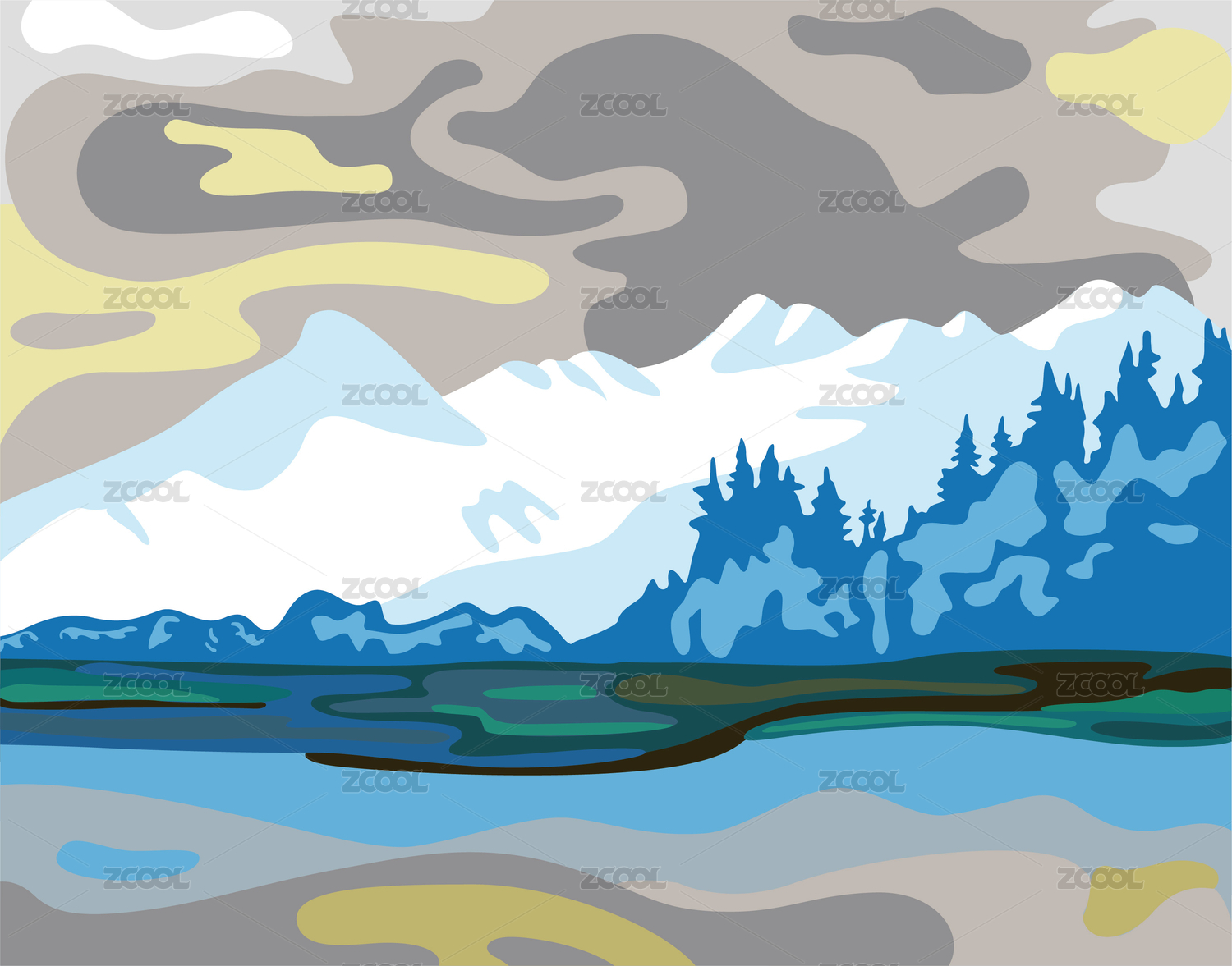 矢量图设计元素新中国风山水画