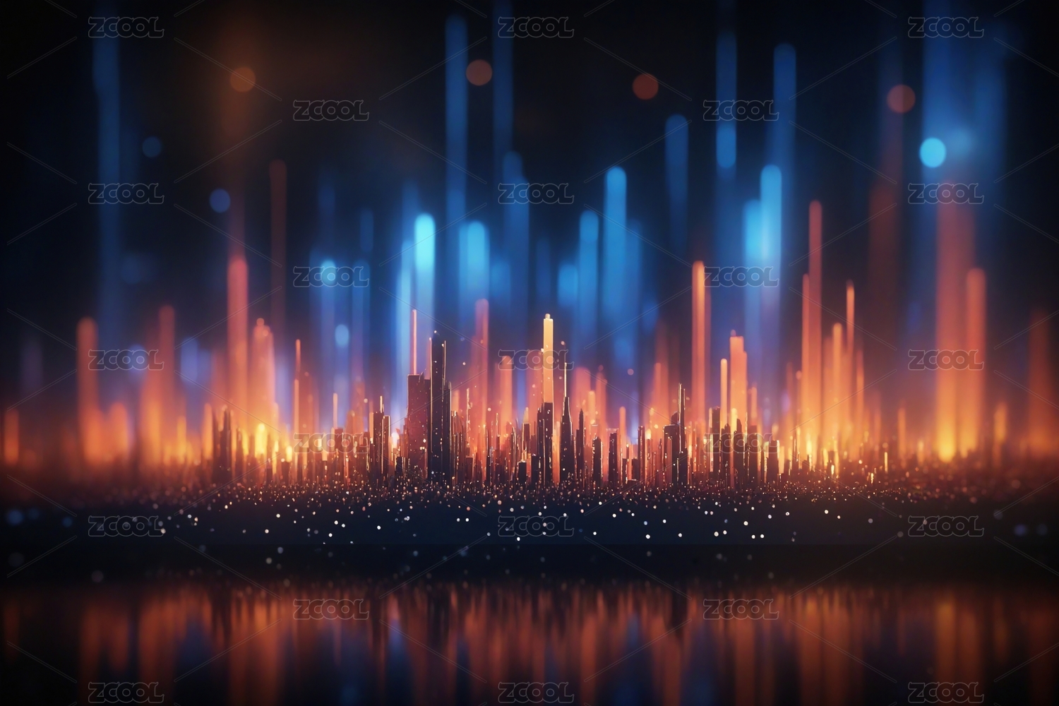 城市,高楼,灯光,夜景,建筑,城市天际线,黑暗,橙色,蓝色,反射