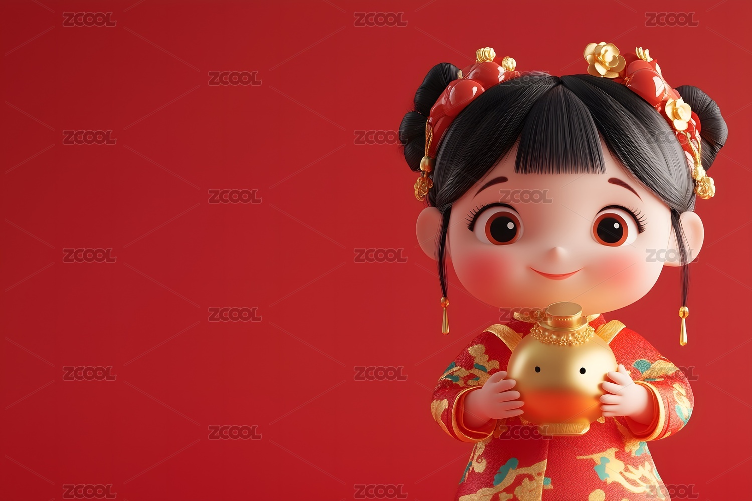 喜庆中国风女孩3D卡通渲染图