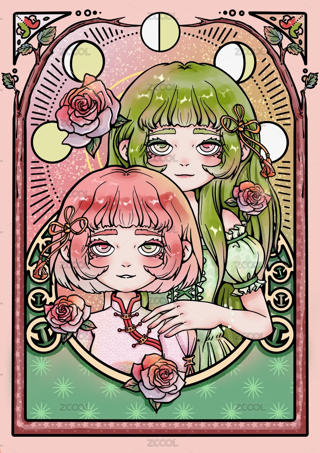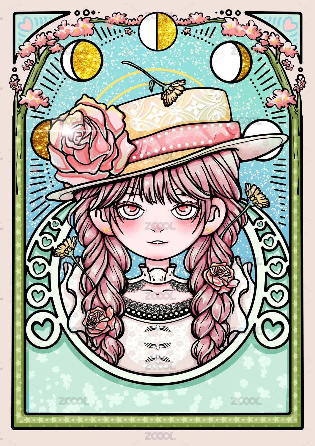 卡通二次元民族风手拿冰淇淋的潮流玫瑰女孩