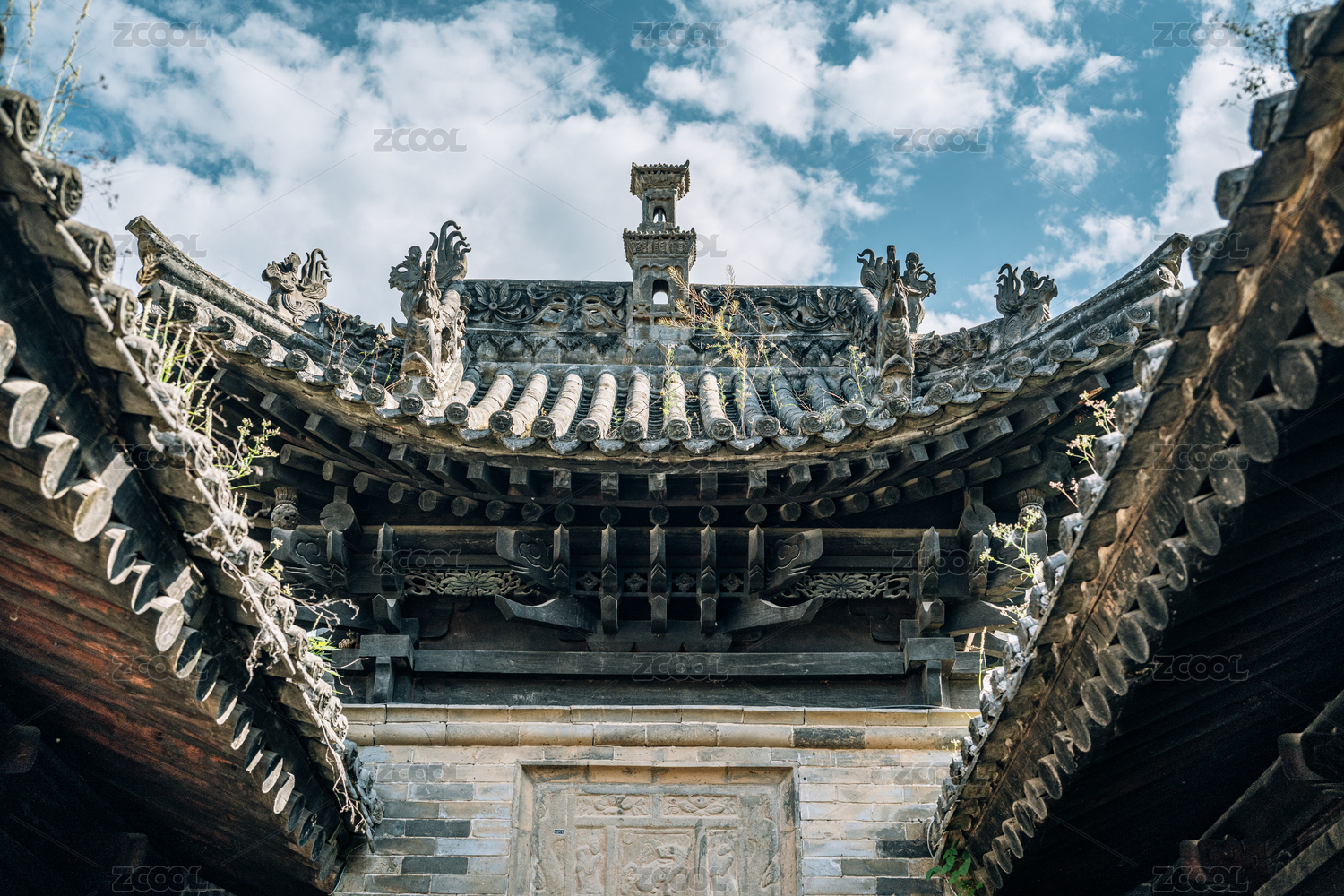 中国山西省武乡县民宅房梁屋脊神兽装饰建筑
