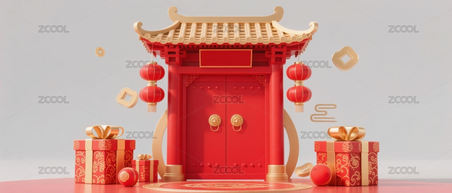 春节,喜庆,开门红,人物,3D,福娃,快递,物流,商务,送礼