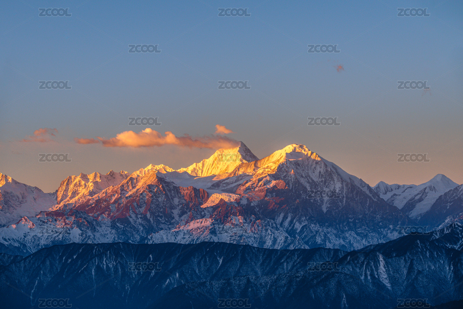 川西贡嘎雪山旗云日照金山