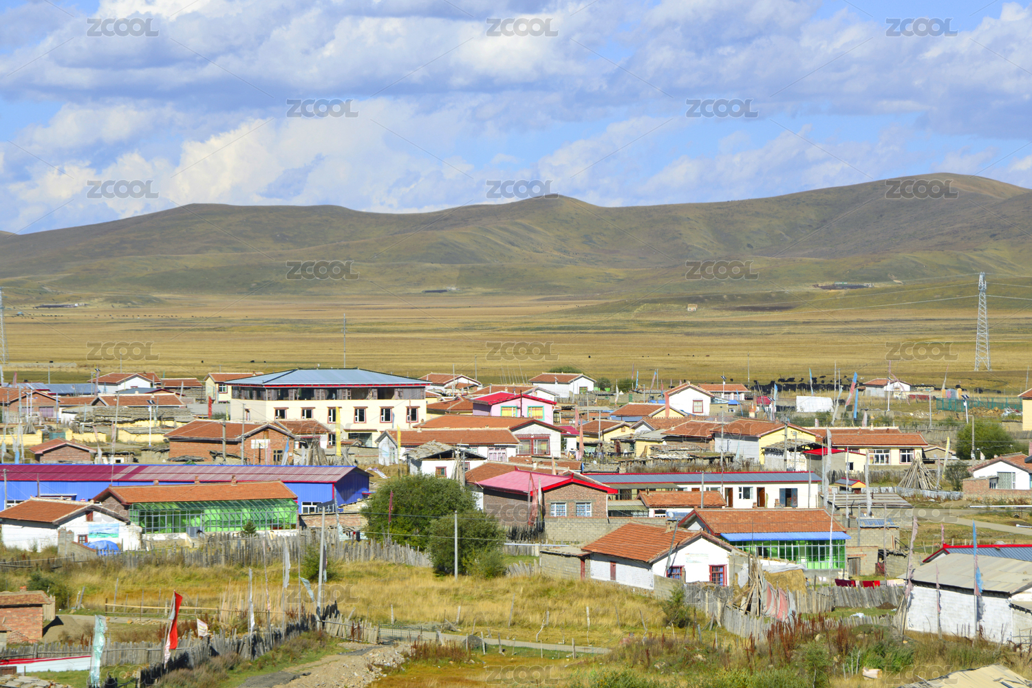 俯拍四川省阿坝州的若尔盖县城城镇风光