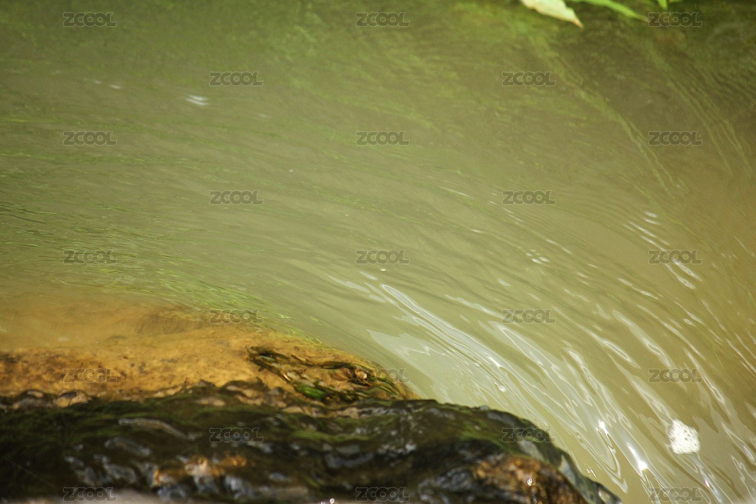 溪水边岩石上生长的苔藓和菖蒲特写镜头