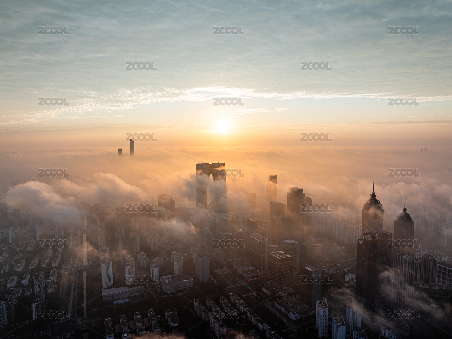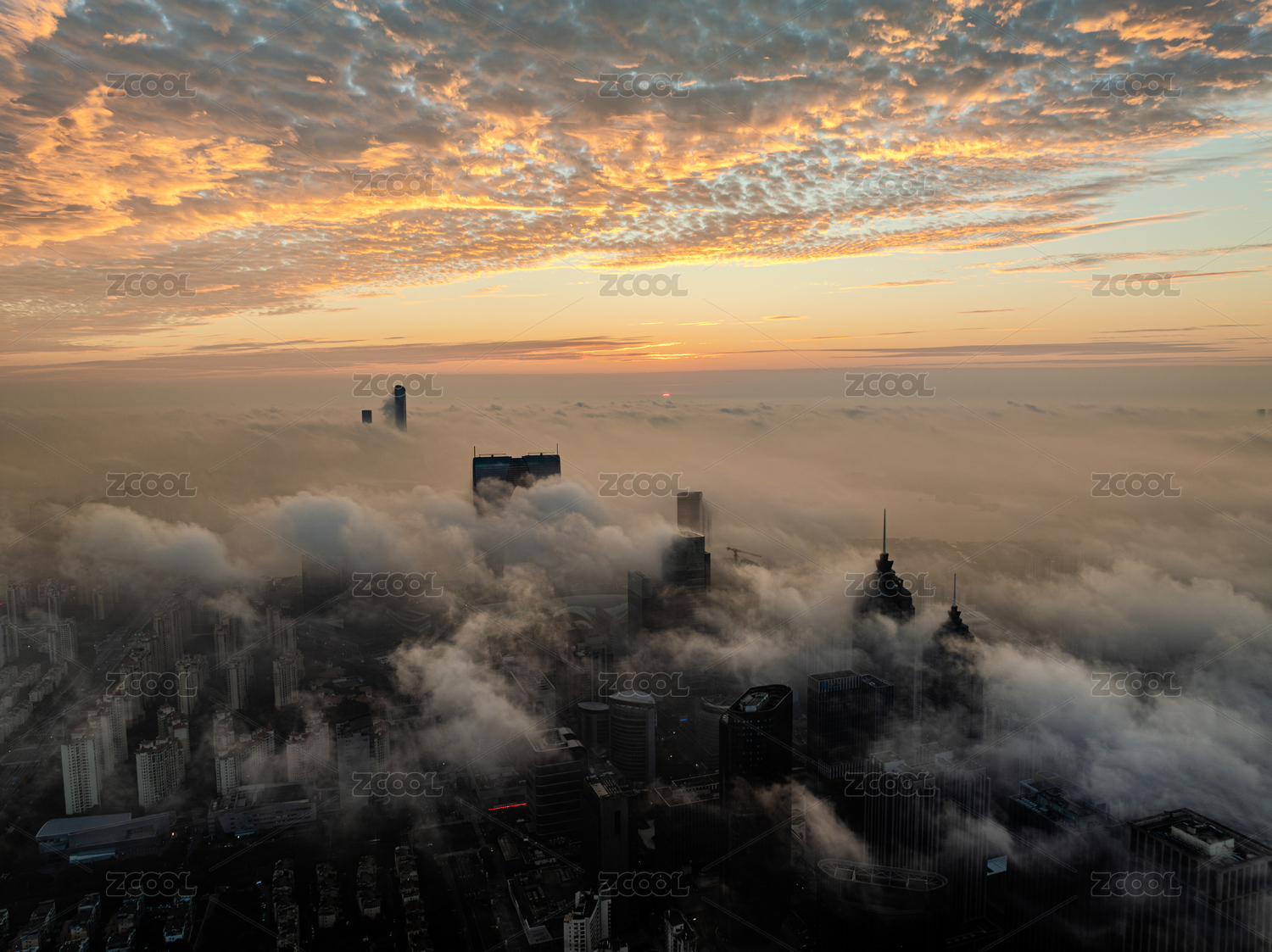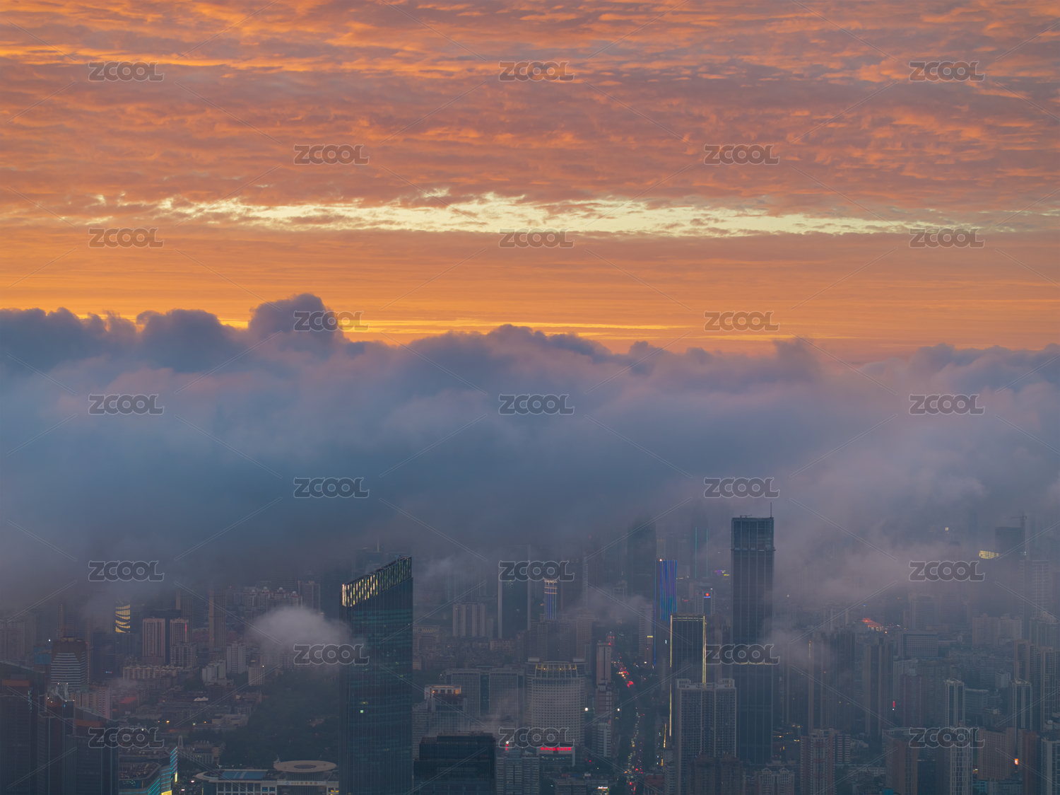 深圳福田CBD大湾区平安大厦日出云海朝霞
