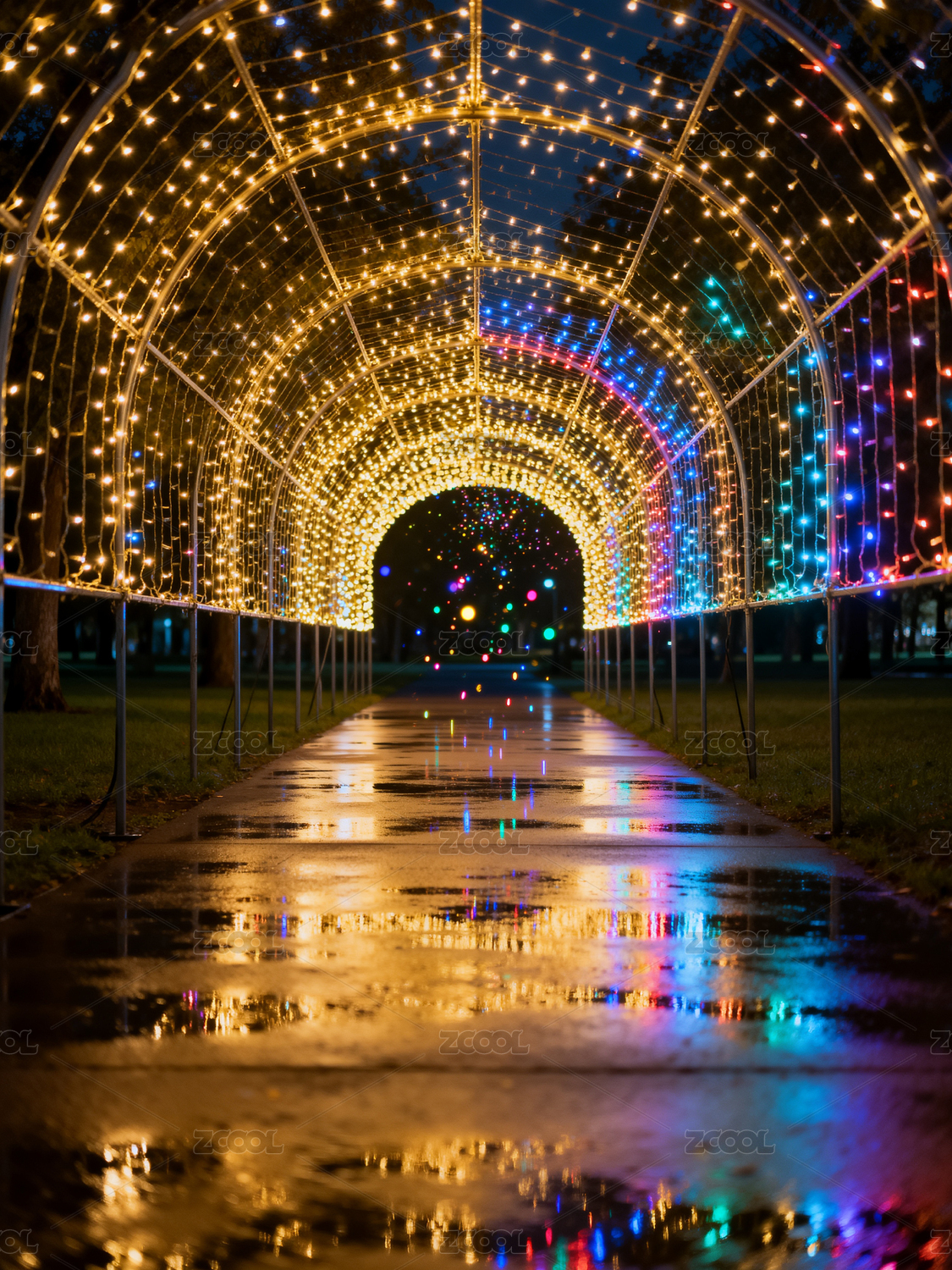 烟台,东炮台,公园,长廊,灯光,夜景,延伸,蔷薇长廊,紫藤长廊,晚上