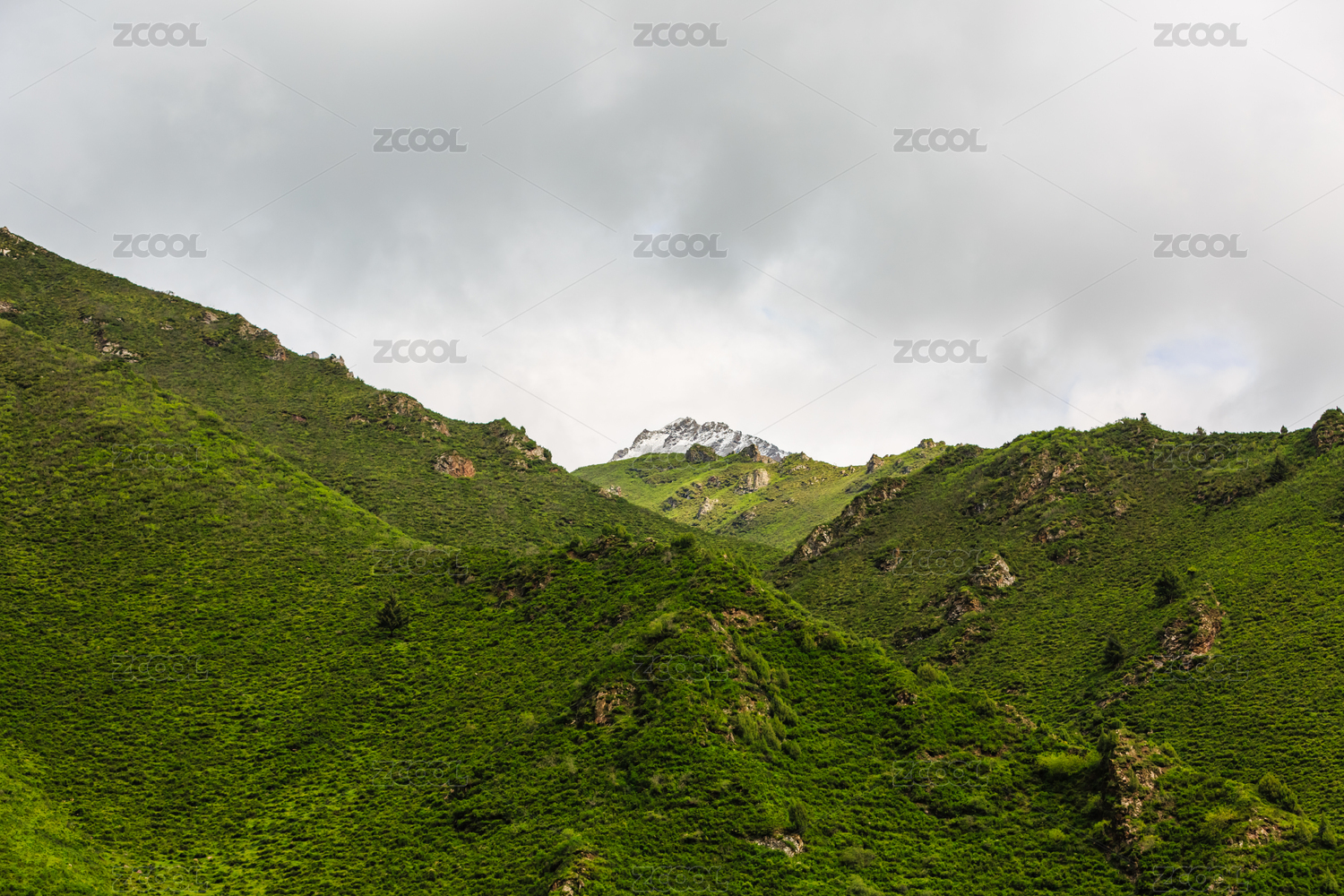 甘南秘境洛克之路连绵绿色山脉蓝天白云