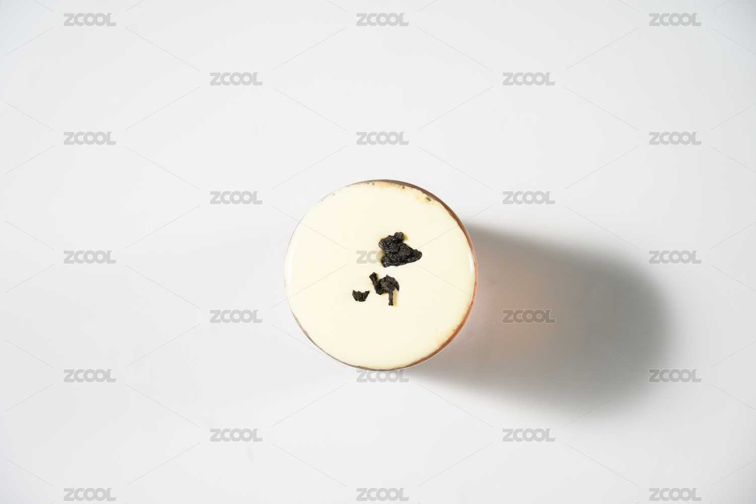 桌面上的杯子里的甘甜可口的奶盖乌龙茶