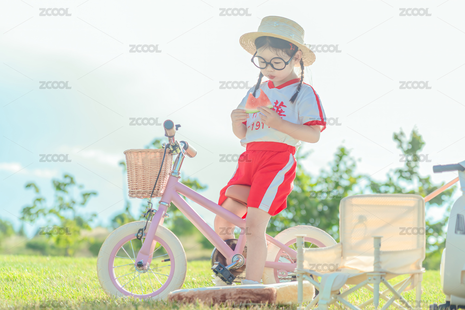 粉色自行车,自行车,女孩,幼儿,戴礼帽的,眼镜女孩,炎热,野外,自然荒野区,旅游