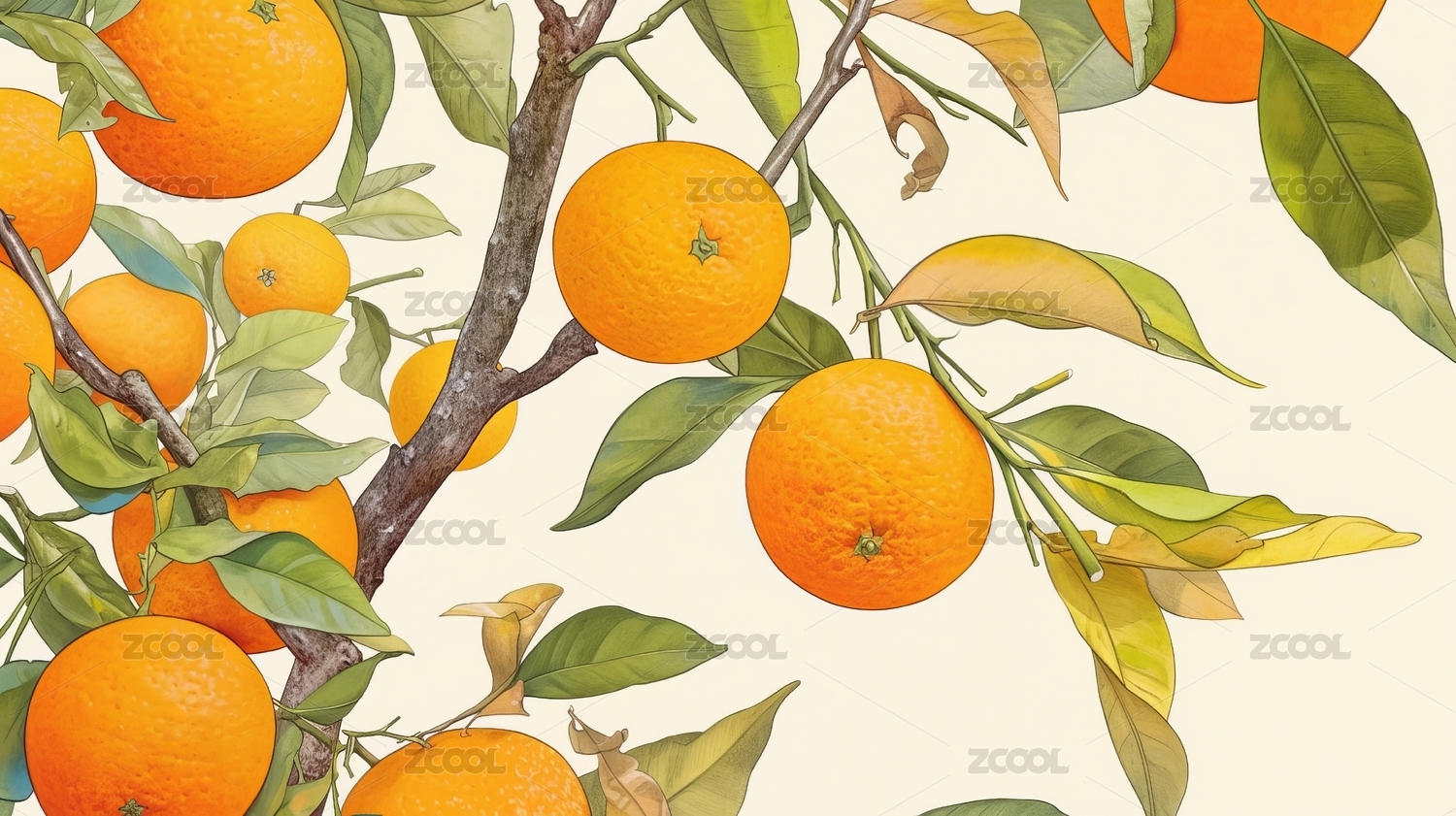 水果水彩插画剪贴簿纸派橙色极简复古创意图