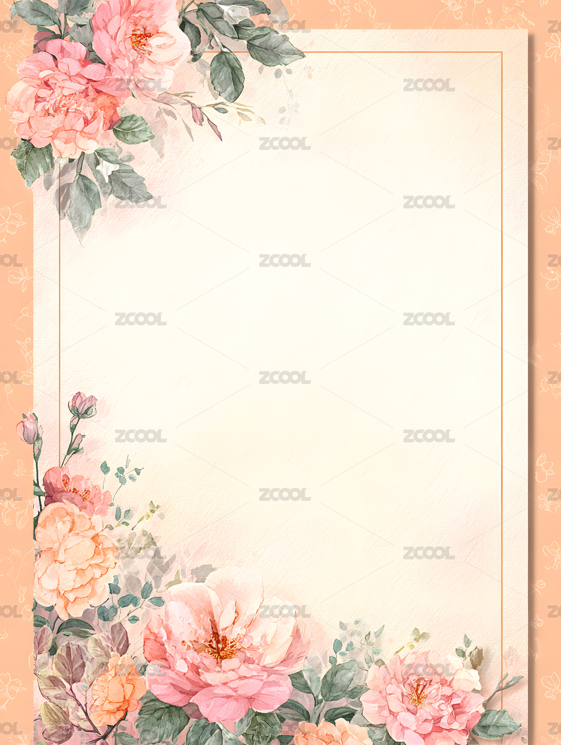 淡粉花卉装饰的空白背景图