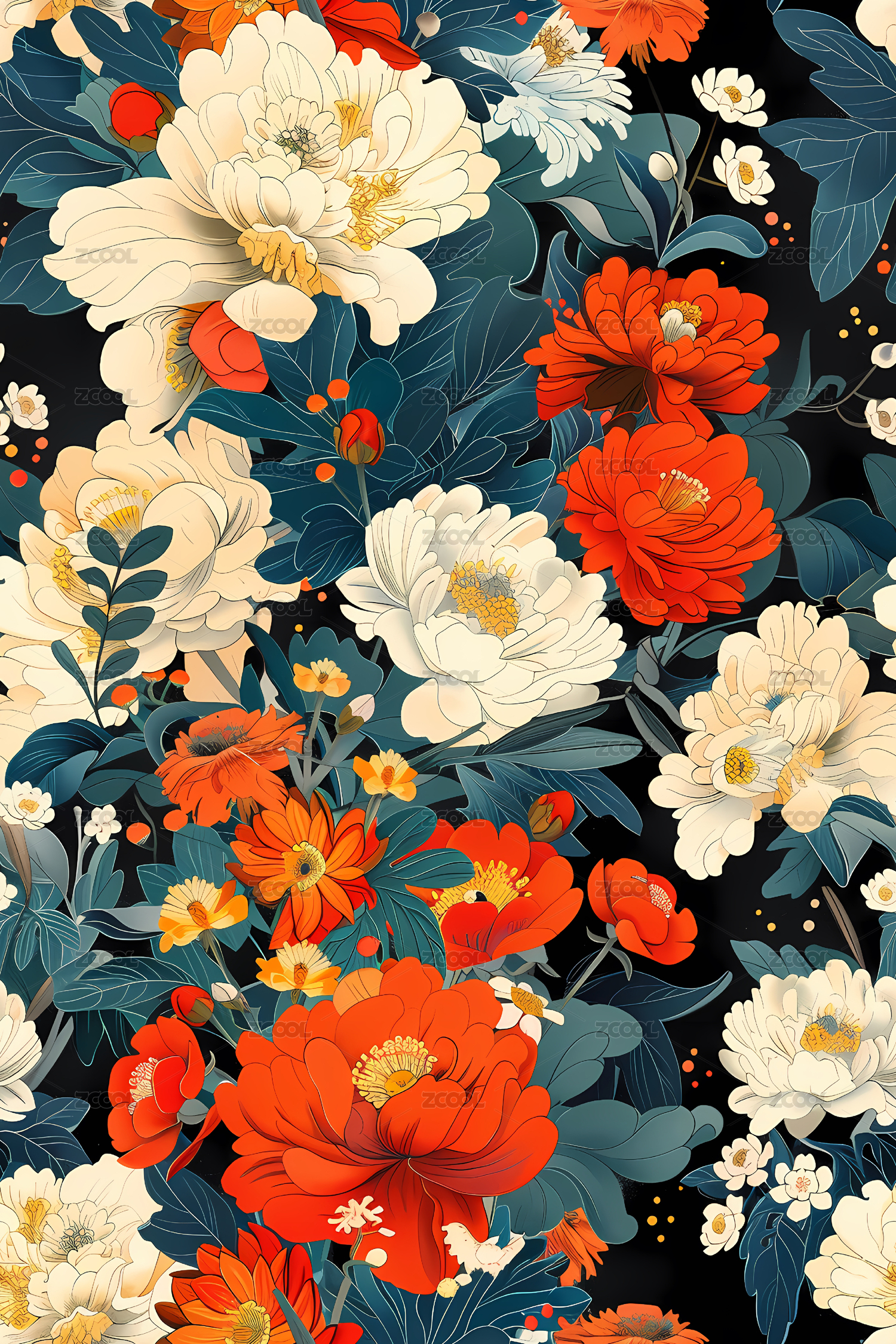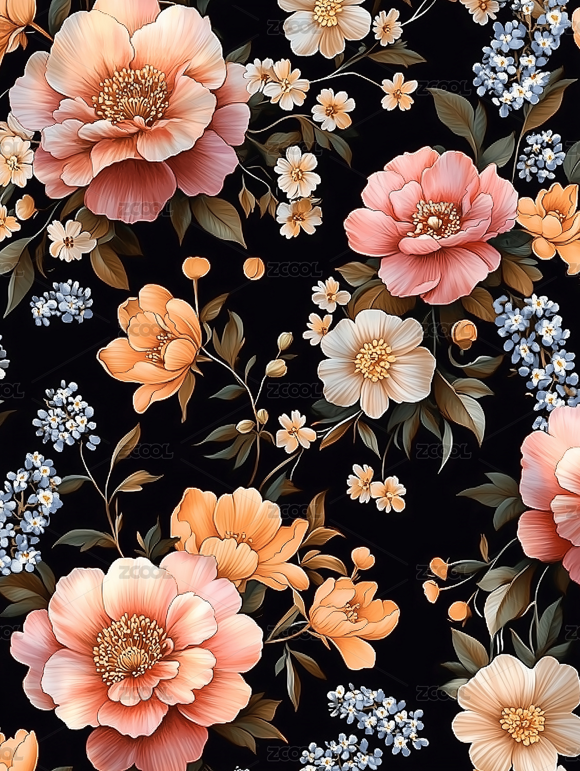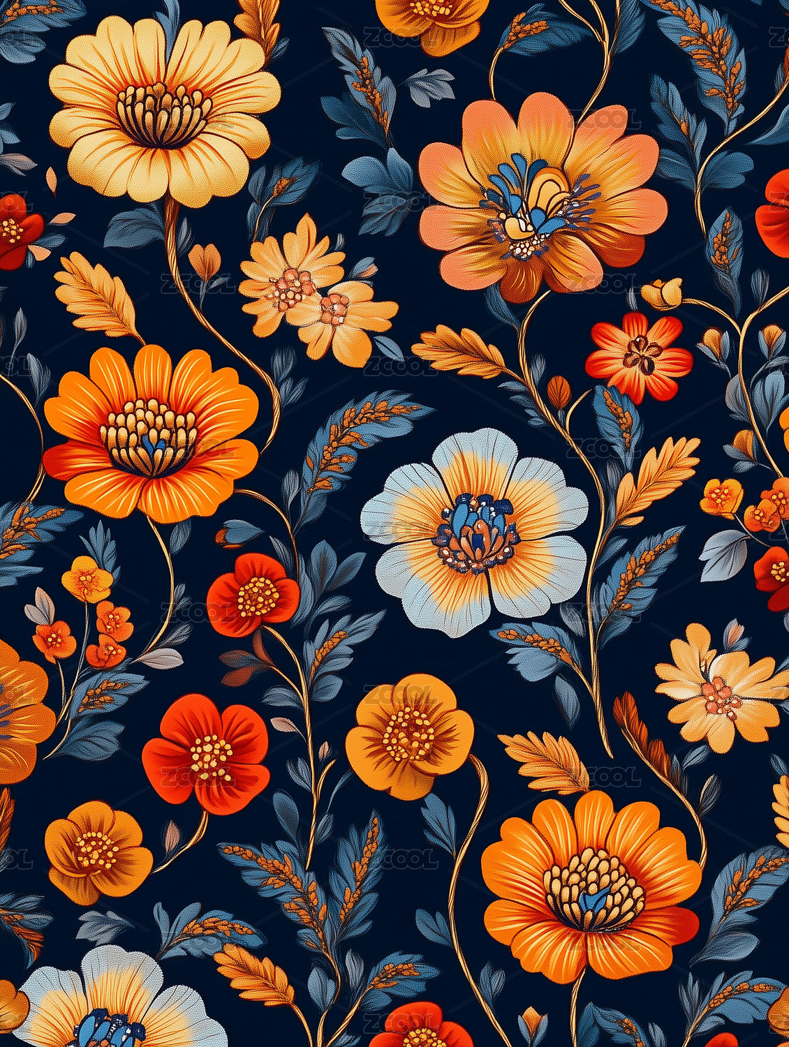 橙色,花朵,叶子,纺织品,植物,花卉,图案,绘画,新鲜,水彩